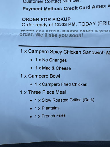 Read moreThis place is amazing! The food here is delicious and fresh. The service is quick and very helpful. I was having issues placing my order on the app, so we went to the counter and Isabella was so incredibly helpful and nice. This is the third time we've been here and we will definitely be back! There will be one opening soon right up the street from us in Garden Grove, so we can't wait for that. We've tried different things each time we've visited... everything has been outstanding everytime we've had it. From the plantains to the chicken to the empanadas.. you can't go wrong! I do have to say eating at the restaurant is better than taking it home, because for us it's about a 15 minute drive (don't get me wrong, it was still awesome) , but everything is way better when it's hot out of the fryer/oven however it's prepared. And when you get the chance, sign up for the Pollo Campero club.. you'll get a $10 off to use on your next visit!!! And everytime after that you get points to earn towards your next reward, it earns pretty quickly. Dining room is a little small and it does get busy for lunchtime, but the are very efficient on getting the orders out. The drive thru move quickly as well. The as also have mobile orders, so that's an option. Come check this place out, you won't be...