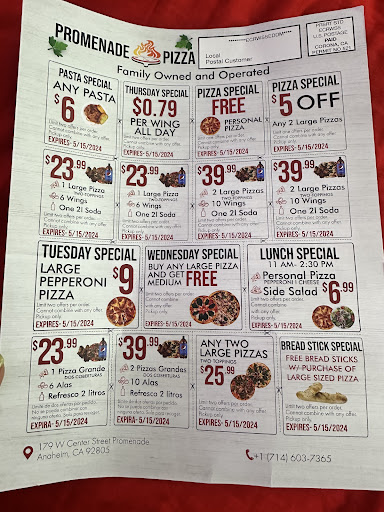 Came here because I received coupons in the mail. Considering I just moved to Anaheim, I figured I’d give them a try in hopes to support a local business. The initial reception was excellent. Where things took a turn was me being told it would take 15mins for my personal pizza and Caesar salad. Now that was fine. What isn’t okay is that I waited double that only for me to have to stand at the counter for the cashier to ask me what I was waiting for. I told her my order and she apologized and pulled my pizza from a heat rack because apparently it was done already but she thought I was “waiting for a large call in order.” I can understand that as they were really busy. She did throw chicken on my salad at no extra charge, so that was nice.