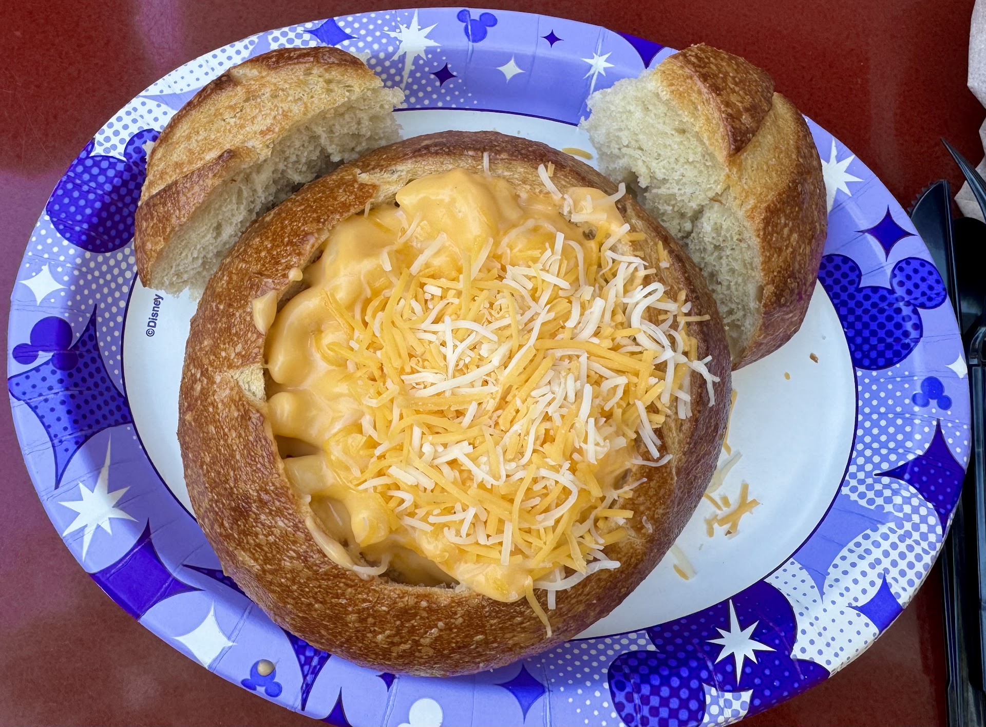 Read moreTwo of us shared the Mac & Cheese Sourdough Bread Bowl, delicious! This was probably my favorite meal inside Disneyland Park. I love sourdough, so I’m picky about it and this was incredible! It had a crispy and crunchy crust, then soft inside with just the right amount of sourdough flavor.
