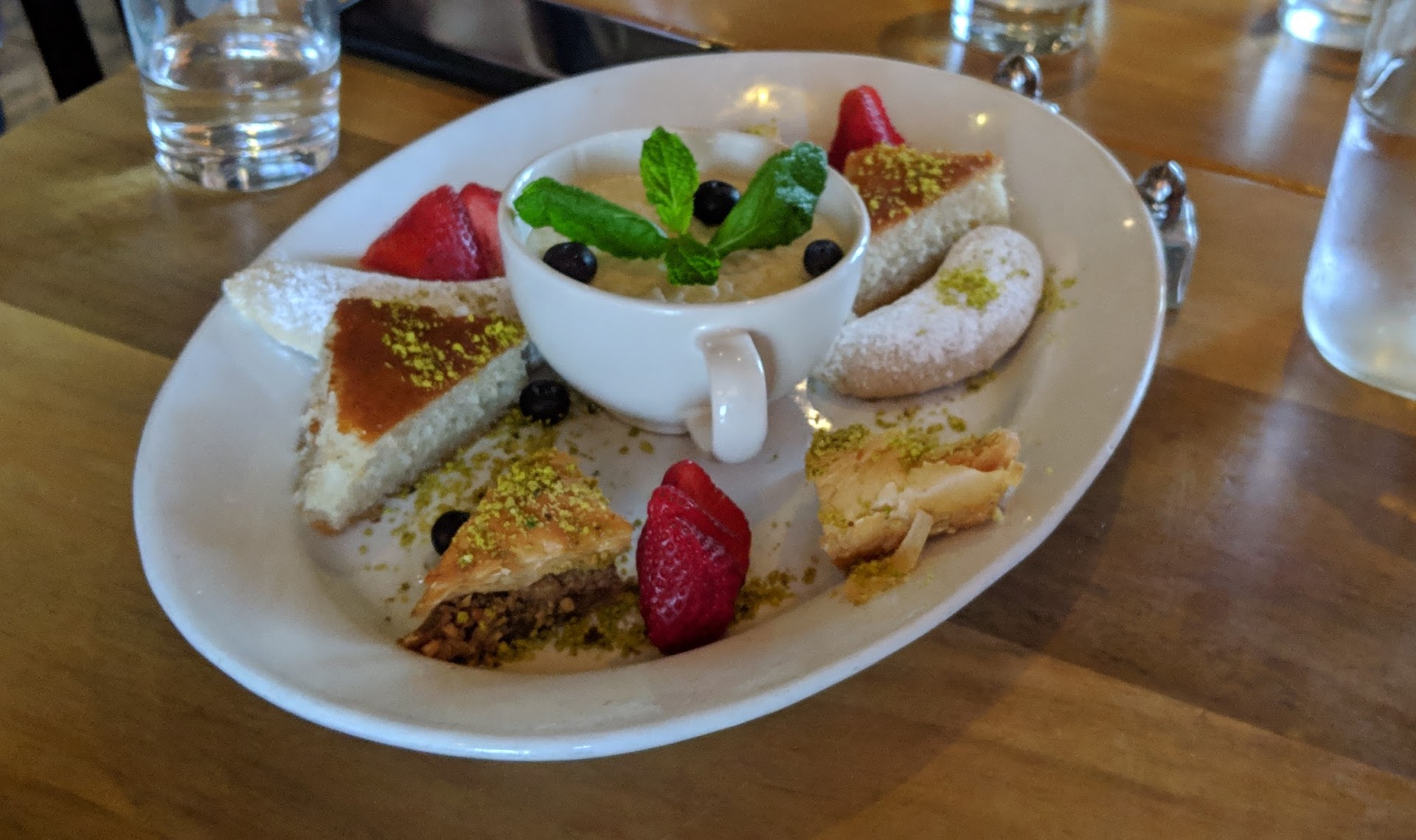 We went to try this restaurant and given a look from the female host like your not dressed formal? We sat for some time before a waiter showed up. The menu is a bit confusing but the waiter deciphered it for us. After he took our order the waiter disappeared and no one took his place. We were at least 45 min waiting for dinner. I should have known when they expected us to share a small amount of bread it was only going to get worse. I think the restaurant is actually Armenian. Our food finally came with a few inquiries. The rice was non tasteful. The ratatouille made me never ever want to ask for it again. My husband and grandson food was cold. After $125 for 3 meals and they ordered hamburgers! I would advise go somewhere else. Total waste of money! No one brought a check and no one came to take the check. No waiters. Horrible food. I could of warmed up a Marie calendarâs frozen meal and got the equivalent. What the heck is this place about! A bunch of elderly getting drunk near the bar...