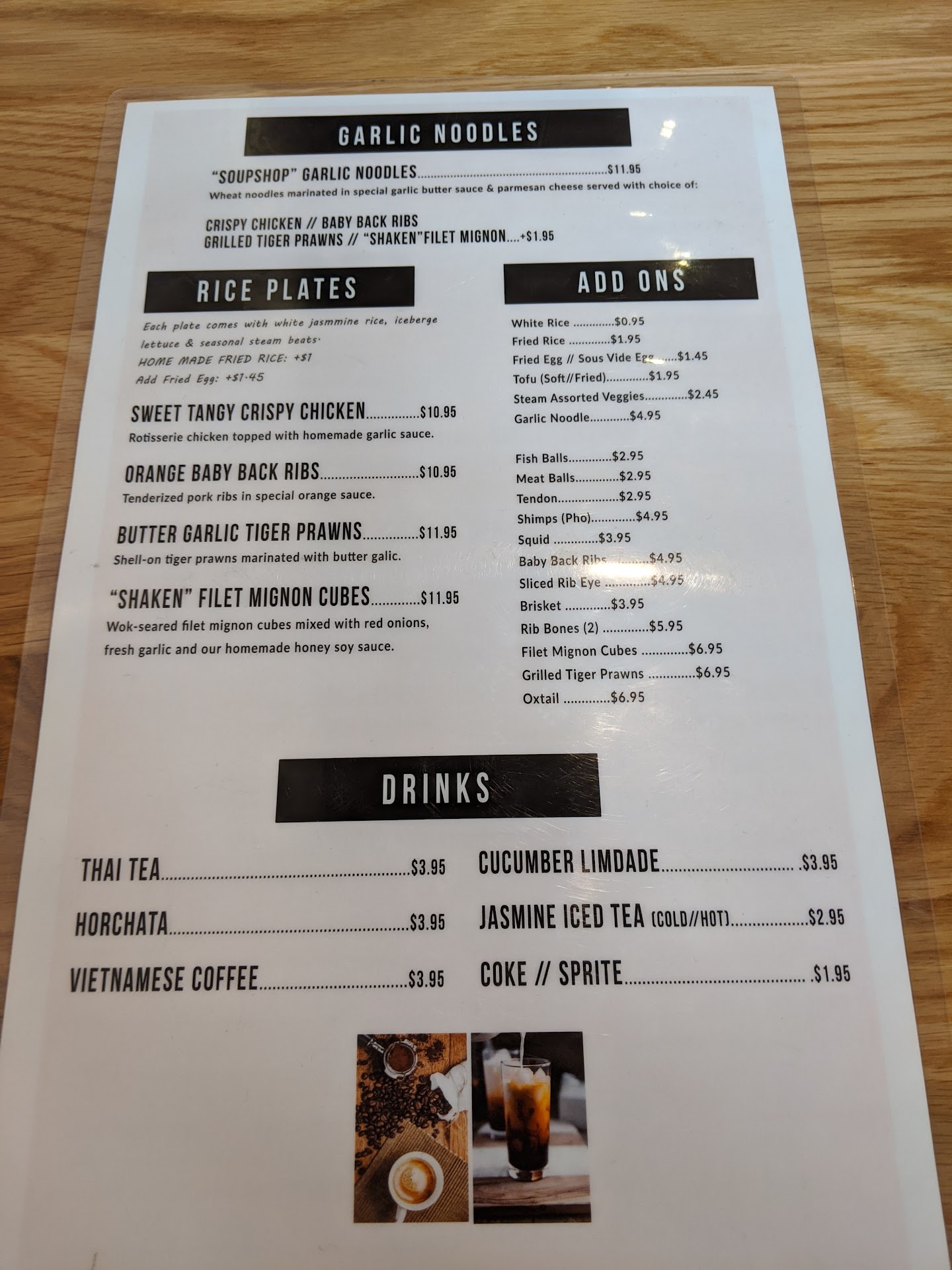The Soup Shop left much to be desired, especially when compared to the rich and competitive culinary landscape of Little Saigon. Here's a breakdown: