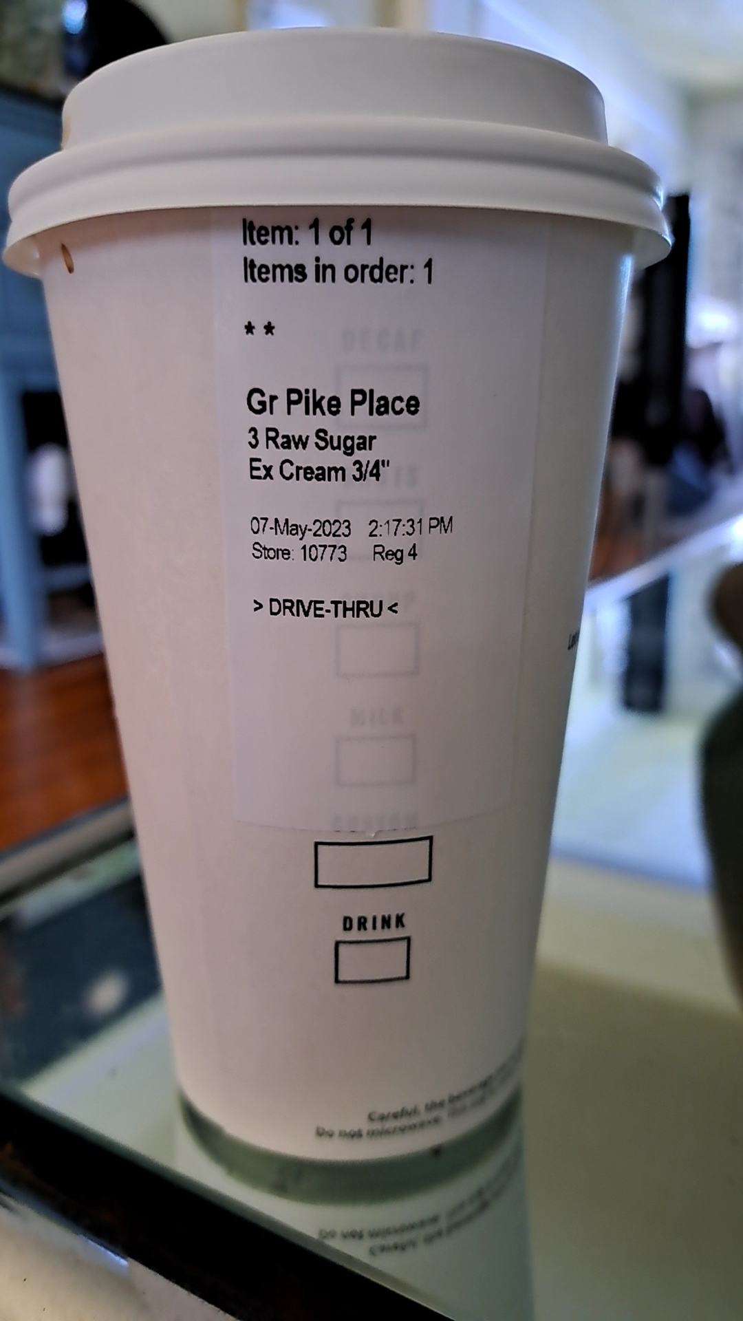 To make matters worse, our coffees were absolute trash! We ordered 2 grande cappuccinos - one with soy milk and mocha, the other with dark caramel sauce and cinnamon- our typical order for Starbucks drinks. Both tasted like old coffee water with syrup! Nowhere near a cappuccino espresso. Needless to say, we will not be returning to this location. ONLY reason For 1 star is because the drink was ready 2 min before the estimate on the app and the location looked...