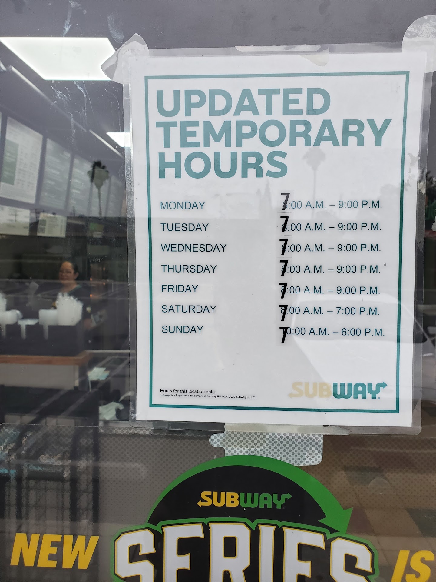 Poor business decisions. I'm not a local to Anaheim but I decided to swing by my favorite sandwich making establishment, subway. I arrive at 6:50 p.m. to find doors locked but staff members inside. I mouth gesture "are you guys open" then the employee gives a responded gesture "we're closed". I then look at the hours of business and they apparently close at 7 p.m. on a Saturday which is absurd. Thus leaving me hungry, sad and dissatisfied...