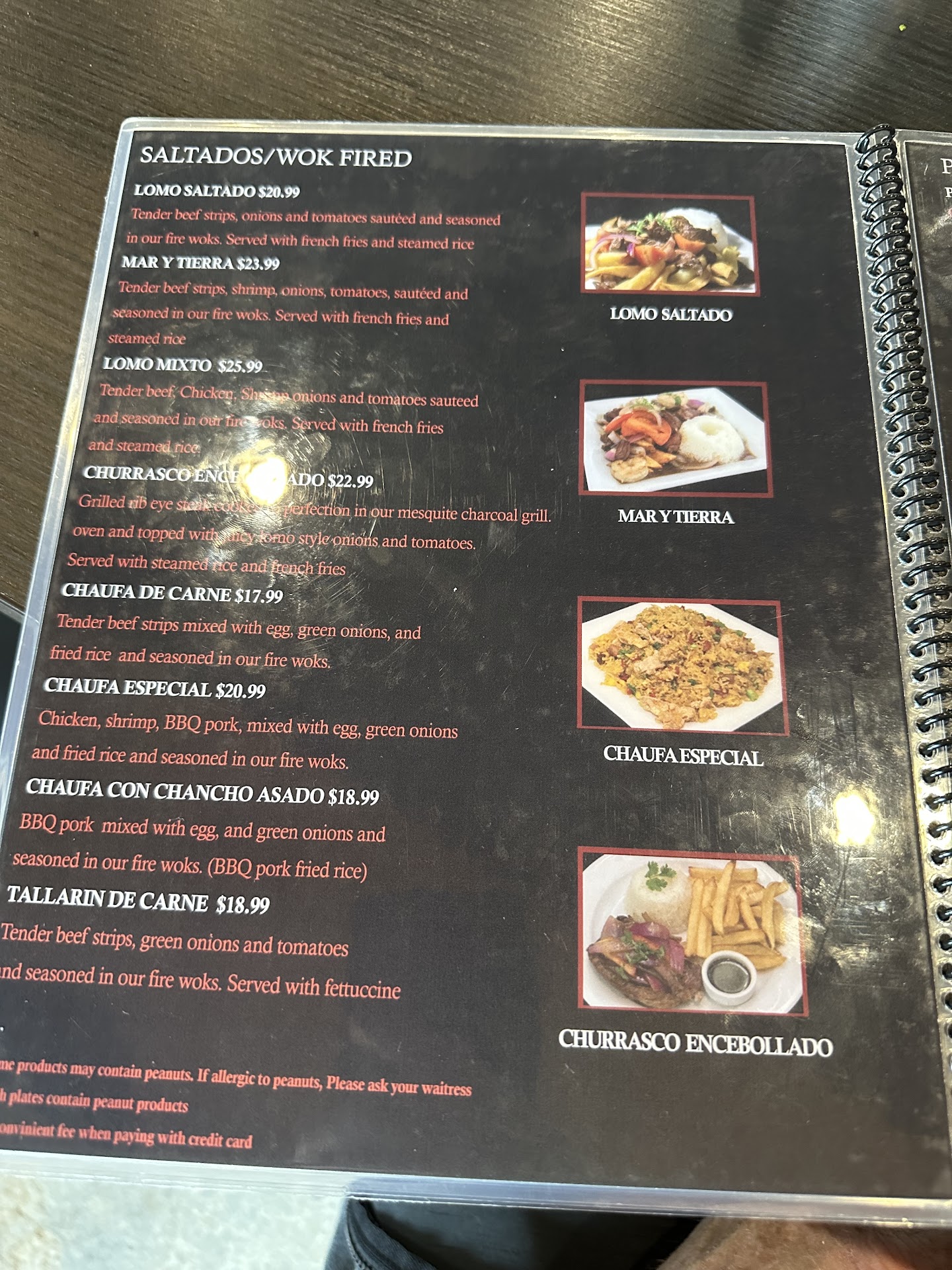Read moreWent to eat here today and the service was ok. Salad was saggy and it was dripping with water and the chicken was supper dry it looked old and the tallarín saltado had a lot of soy sauce that it didn’t tasty it was supper sour. The tallarín verde had to taste had to add salt. And hot saice. Left is with stomach ache. Don’t recommend this place. Food used to be good when it was norrys.