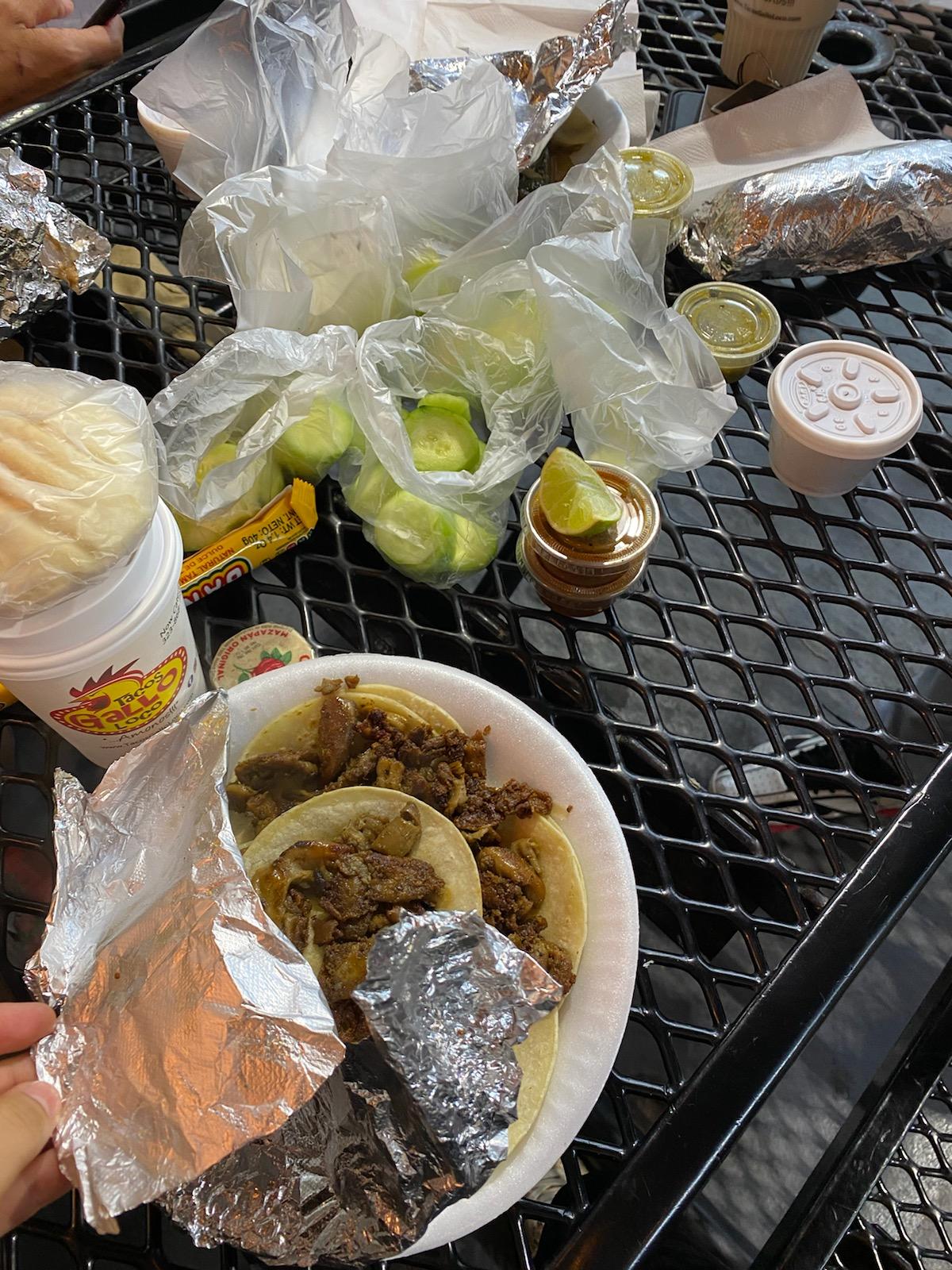 Read moreOk I really like this place usually but today was a no for me I was so disappointed 😔 today I ordered my food and I've never seen them do this but they heated up my food in the microwave on top of that I asked for my drink and dude went to the back grabbing one cup and looked like it was dirty put no ice I asked for ice and grabbed my cup went to a Gatorade cooler ok a cooler those orange coolers and got my ice out of it then dropped the lid on the dirty floor i mean come on then he put it back on without washing it bruhhhh the horchata tasted like straight milk n water that sat out for a few hrs when I went get the grilled onions I love so much they smelled of spoiled cheese n old oil I usually get three pks of these today I got none over all thus place was my favorite as of today my trips to this place end today untilll they change the way the operate my family and I will not return oh and that cup had a small hole I got home and it leaked out the whole drink I was more irritated got all over my new shoes 74$...