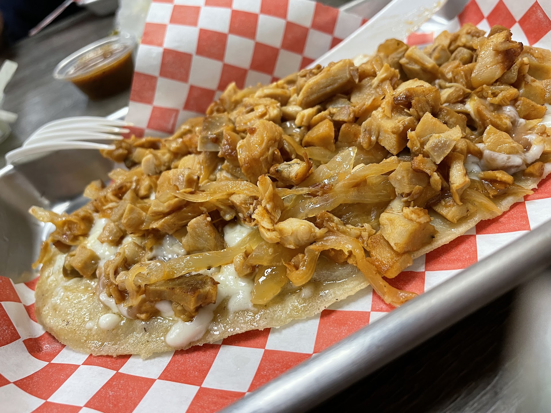 Read moreWe went to tacos Los Cholos down the street but the line was SO long we came here. The lady that took my order was super nice. Tacos were very reasonably priced. My husband had asada, Buche and cabeza. He said they were just ok. I ordered the chicken huarache, $10! What I got was and elongated corn tortilla. I asked for the cilantro and onion on the side. Didn’t get any. Chicken was super dry and rather flavorless. The most disappointing huarache EVER. They have a good salsa bar. We had an agua de jamaica and it was delicious. So if you come for the agua, you won’t be disappointed. They were apparently closing while we ate, and turned down the lights…hurry...