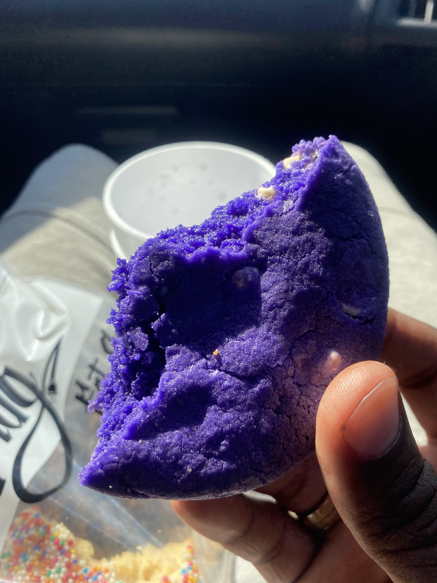 Back to the cookies! They have a nice variety of flavors to choose from. I had purchased the Purple Haze, Sugar Cookie, Peanut butter, and my girl ordered the cookie with sprinkles, Cookies and cream, and one more flying can’t remember.