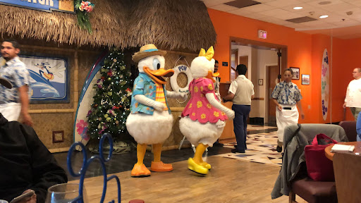 As soon as you arrive, you get a professional photo shoot with Surfer Donald! (Yes, they can use your camera/smartphone, too) Loved the surfing & holiday themed decor when we went during my birthday trip. So much activity all over the restaurant- other characters available that day were Daisy Duck, Minnie Mouse & Stitch! Super fun! Our time slot on a mid-weekday worked well for us as there weren’t too many other diners. So we got A LOT of special attention and interaction with the characters roaming around and seeing them interact with one another. It was especially heartwarming to see Donald & Daisy talking to one another & strolling around together as a couple. You don’t see that every day! 🥰 Love! Love! Love!