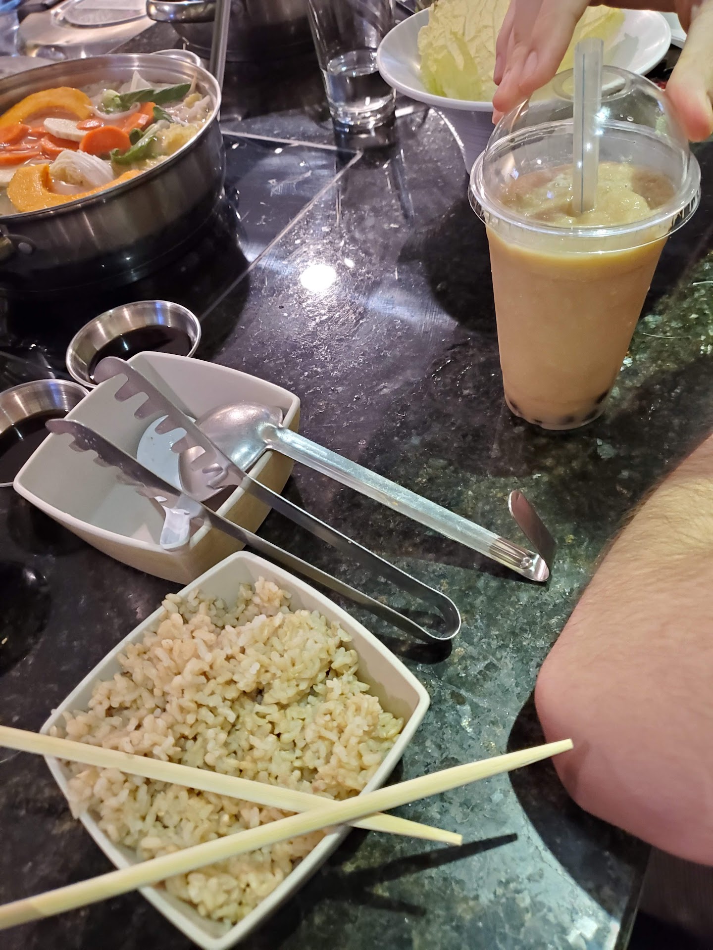 I came here twice so far, and I'm a fan! The first time I came with my friend. We got the spicy edamame, small organic grass fed chuck with miso broth, medium prime rib eye with mushroom broth, and mango snow shaved ice. The edamame was perfectly cooked and had just the right amount of spiciness. The hotpot was great too. I loved my miso broth. It was like drinking a giant bowl of freshly made miso soup, but it wasn't really spicy. My friend enjoyed her mushroom broth. She said it was light with just the right amount of flavor. My friend and I loved everything we ordered. It doesn't seem like much at first, but once you cook everything, eat the noodles, and drink the soup you're stuffed! My friend even had enough food to take her leftover noodles and soup home. We finished off the meal with a mango shaved snow. It was smaller than I anticipated, but really good. It felt light, refreshing, and wasn't overly sweet. I loved my meal so much, I made my boyfriend come and eat dinner here a few days later. We had the organic vegetable hotpot with miso and a side of mushrooms, Medium choice chuck with spicy thai lemongrass broth, and 2 popsicles. My vegetable hotpot came with soooooo many vegetables. I got full before I even had a chance to cook my noodles. The server helped me cook my noodles and pack them up for leftovers. It was just as good the next day! My bf loved the spicy thai broth. He finished everything and was pretty full as well. I enjoyed the 3 different mushrooms I got in the mushroom side order, but it was a pretty small amount. The popsicles were good although I forgot what we had.
