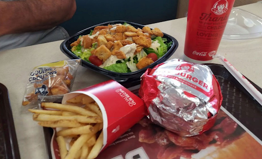 Read moreOh my gosh. Sometimes just acknowledging someone at the counter will stop customers from throwing a fit. My hubby and I, along with another group stood at the counter for 10 mins watching the crew ignore us all. Watched two guys joking around at the fry fryer. Watch one guy stand and stare at the Fry's as they cooked. Watch a girl run back and forth packing a bag. Watch 3 guys in the back area do nothing. Finally asked if anyone is working the counter. Got ignored. Said it louder, got ignored. Knocked on the counter and yelled, is anyone working? Finally the girl says, "sorry we're just busy". There were 3 cars in the drive thru when we walked in, there was one guy sitting at a table eating, then there was us at the counter. Super busy. Word of advice. Turn and look at the customers and acknowledge them by saying, "we'll be right with you". It's just Wendy's. Nothing to brag about. I didn't get what I ordered but with how things were moving behind the counter, I'm lucky I got a burger. Staff needs a good meeting with...
