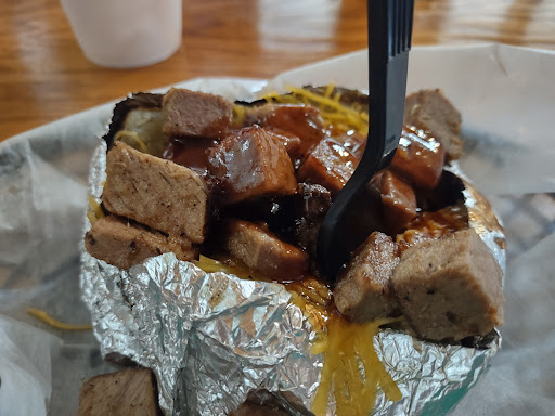 Read moreI wish I could recommend this place. We had two different people recommend this restaurant , so we decided to give it a try. When we entered, we felt a bit lost. You place your order in a back corner, and, fortunately, a patron directed us to the right spot (we saw no signs that showed us what to do). We decided on beef BBQ. I had mine on a potato and my husband had the plate. We paid for our order and sat ourselves at a table (no table service). The table was sticky. We waited for a few minutes and they called us to come pick up our drinks at a window. The drinks were small, with a lot of ice. I ran out of iced tea quickly (and saw nowhere to refill). They called us again after a few more minutes to come pick up our meals at the window. I was underwhelmed. The potato was pretty small (for the price), the beef cubes on top had no flavor (other than the drizzle of BBQ sauce). The whole idea of good BBQ is to slowly cook/smoke the meat and this was just an ordinary cubed beef topping. I finished my potato and left hungry and thirsty. We paid over $30 for dinner (my husband had water to drink). In general, the hospitality is lacking (they need to figure out a way to greet newcomers and help them navigate their system and/or create a better system). They need to stop serving beef BBQ or learn how to prepare it. I don't plan to return to...