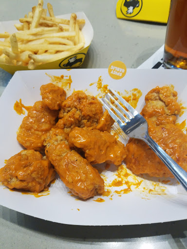 โ โ โ โ โ Food quality โ โ โ โ โ Service โ โ โ โ โ Ambiance โ โ โ โ โ Value โ โ โ โ โ Menu selection โ โ โ โ โ Location/Accessibility โ โ โ โ โ Overall experience In December, I went to Buffalo Wild Wings with my former coworker, FF, to catch the World Cup Semi Final match between France and England. Even though FF was no longer with us, we were able to arrange a meet-up and arrived just after 2 in the afternoon. The restaurant wasn't very busy, so we quickly found a table. The restaurant itself is quite spacious with lots of tables and a central bar counter. The walls are lined with dozens of TVs broadcasting various sports shows. After settling into our spot, FF politely asked the waitress to change one of the TVs to the channel showing the World Cup. We then took our time going through the menu, and since I couldn't eat chicken or cheese, I opted for an All-American Cheeseburger with no cheese, a side of small fries, and a pink lemonade drink. The burger arrived promptly and was warm and freshly cooked, it consisted of two white buns, two lean beef patties, shredded lettuce, tomato slices, onion slices, pickles, and mayo sauce, all placed neatly on a generic white plate. While the burger was a bit dry, it was flavorful and not greasy, which was a plus. The lettuce and tomato added some moisture to the bite, and the pickles added a much-needed tang. The fries were deliciously crunchy on the outside and soft on the inside, with a mouthwatering aroma. They paired perfectly with ketchup, as is all else. The lemonade was a bit too sweet for my taste, but it was undoubtedly made with real lemons, as my throat felt the burn as it went down. FF ordered 10 medium-hot Traditional Wings and a pint of beer, but surprisingly began sweating profusely after eating only five wings. I couldn't resist teasing him for being a lightweight. To prove my point, I asked the waitress to bring us a sample of the spiciest sauce, the BLAZIN'ยฎ CAROLINA REAPER, which I found absolutely delectable. Surprisingly, I loved the flavor of the sauce, which tasted like a chili pepper-infused oil you'd find in any Asian market. The sauce had a grainy texture that absorbed into every muscle fiber of my mouth and tongue, leaving a long-lasting spiciness with an earthy and slightly bitter undertone. It paired perfectly with my fries, which I quickly devoured. Although I wouldn't necessarily consider myself a true M when it comes to food, the pain and burn that came with this sauce was something else. The intensity of the heat brought me so much pleasure that I felt like I was in the embrace of a sucubus, and for a brief moment, I was transported to he*. The experience was so good that I ended up ordering 30 medium-hot traditional wings for a party I was going to attend. While I enjoyed my burger, I found it a bit expensive considering the quality of the ingredients, apart from the buns. The cooking technique could use some refinement as well. Nonetheless, considering the excellent service we received, I believe the price was fair. The restaurant's menu was a standout, offering diverse and customizable dishes. Moreover, the numerous sauces available for any dish were a big plus. Overall, I had an enjoyable experience at Buffalo Wild Wings, despite being unable to consume one of the primary ingredients. It was my first time visiting an authentic sports bar, having previously only watched soccer at a street bar. I wholeheartedly recommend Buffalo Wild Wings to any sports fans who have yet to try it out, which I'm sure is a small number. Oh, and by the way, France...