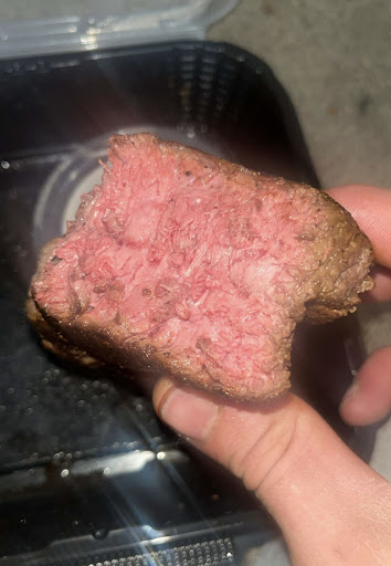 We find a carry out container and box up the steak and decide to leave. Can't find the server anywhere.