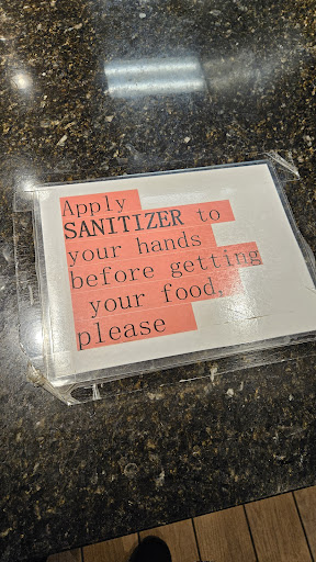 Raw food stacked way too high in the self serve chiller. This means that all the raw meat on top isn't properly refrigerated and is being stored in the temperature danger zone where bacteria multiplies exponentially. Every raw meat was stored his way. Had an employee reach his hand into the middle of our table to grab a salt shaker for another guest without so much as an "excuse me". To be clear, there were maybe 20 empty tables he could've done that from, and we were all in the middle of our meal, just felt a bit rude. Not a single one of the three cooks washed their hands or changed their gloves the entire time we were there. Every single one was seen touching his face or mask with the gloves on before then touching food. I watched our server take noodles that were hanging off the edge of my bowl on the counter with his bare hands and put them back in the bowl before bringing them to our table. Our server never said any kind of greeting or really anything at all to us, he just walked up, stood there until we ordered and left, not the biggest deal but then when he came back with our drinks he just set them all in the middle of the table so we got to play "guess which drink is yours".