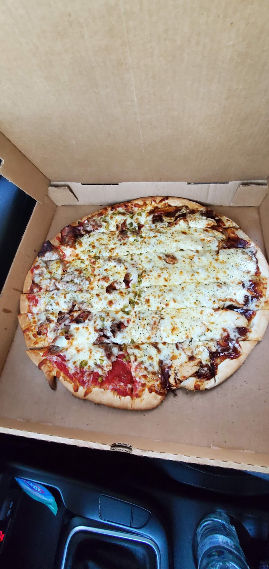 Read moreI lived in Anderson for about 9 months. I'm from Northern Indiana adjacent to Chicago so I know really good pizza. It's not easy to find phenomenal pizza this way in my opinion, but when I lived in Anderson we enjoyed the roast beef Pizza here. My daughter and I decided to go on a day ride a few days ago and she spotted the pizza joint, honestly I was going to stop and grab gyros since they are hard to come by as well this way but with a little convincing we grabbed pizza. One side was barbecue chicken pizza and the other side was roast beef. We also got an appetizer trio that included mozzarella cheese, fried ravioli and onion rings ( no photo) the barbecue side of the pizza was pretty saucy and perfect, cannot complain about the sauce on the beef side either. I only wish I could have eaten it while still in Anderson instead of waiting and bringing it home to the family. We currently reside in Fishers, so I'm certain I didn't get the full effect...