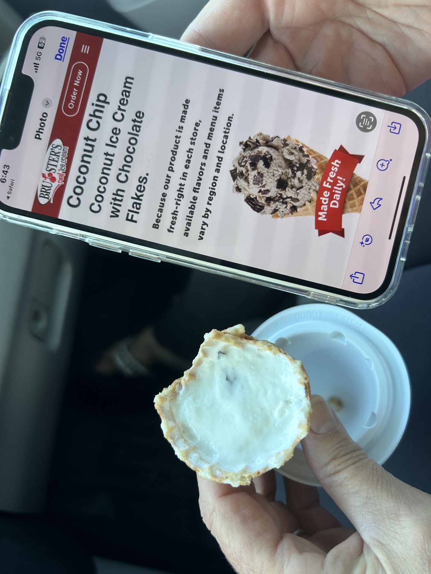 I just had the worst experience I've ever had at brusters & I will not be back!! I pull up to the drive through order my ice cream which was a kids dirt sundae and a butter pecan waffle cup( which is called a bowl and that's my bad that I didn't say bowl but OBVIOUSLY It isn't hard to know what I'm trying to say) so after I order my ice cream I sit there and nobody ever says anything so I said "hello" and she says "you can pull around"... so I'm like really? So I get to the window and she says my total and I nicely told her that after I said my order I never heard anything and that's why I said hello.... and she said sometimes the speaker doesn't come through or something like that and so I gave her my card.... She hands it back with my receipt. She brings out my butter pecan waffle cone... i said "do yall not have waffle cups?" And she said "we have bowls is that what you want" and I said "yes please I'm sorry" and she doesn't say anything she goes to the back yells for another girls name working there and brings me back my waffle BOWL along with my kids dirt sundae and i apologized again about the mix up even though it wasn't technically my fault!!!! She asked did I need any other spoons or anything.... completely ignores my apologizes and says "okay" all sarcastic and walks away from the window and proceeds to talk with the other worker... never a "it's fine have a great night" NOTHING! So i say loudly for them both to hear me "Thanks y'all have a nice night" and the other worker says "thanks you too" and that was it. I start to drive off and my husband says you literally see more bowl than you do ice cream.... brusters is not cheap but they always pile your ice cream up!!!!! I barley had any ice cream in my bowl. Needless to say I will...