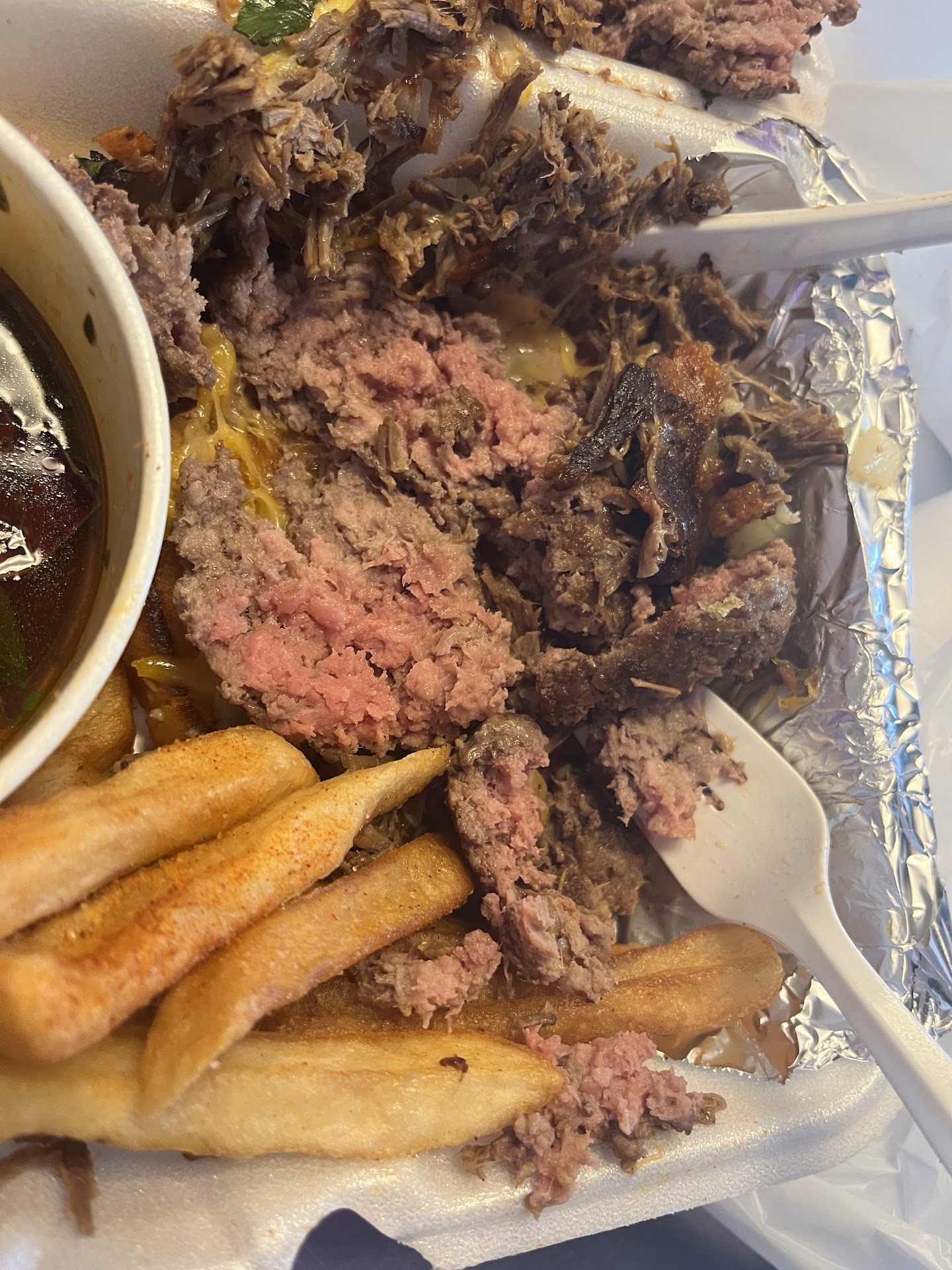 Our stuff took a really long time which I literally don’t mind at all, but customers behind me were pistol packing and ruining the whole vibe in there. There were 4 at that table and 3 of them had guns very obviously had guns in the middle of the front of their pants. We listened to their trashy selves for like 40 minutes waiting on our food. I don’t blame the workers at all!! One girl in the group with her booty out was going off and honestly they were intimidating so of course they are remaking their stuff before doing ours they probably wanted to get them the f of there. It isn’t the workers fault. I feel like the owner should have been out there and done something instead of leaving $8hr employees dependent on tips to cater to the hoodlams. Anyway we finally got our food. My kid’s was edible so she ate it even though they clearly cook the tortilla with the lettuce so it is warm as the items meant to be cold and vise versa. They don’t know how to cook rice. Some were crunchy and it was dry. She left hungry. I thought I was tripping the first time I went here but my second time was worse. It’s so bad. Ok, so I got birria bc I see so many reviews about that and I want to support local business. The birria meat is the only thing good about this food in my experience. I got their birria burger and fries. The fries also had no flavor and were overcooked yet room temp, but whatever I put salt but my patty was raw. I had to wait a long time to ask for it to be remade (workers seem busy busy) but I got something else and it was ok ig, and was refunded the difference. I wanted to like this place so bad and that’s why we tried again but I’m so sorry it is bad. The decor is mostly nice too btw it looks cute. The presentation food is beautiful. It’s nuts bc everything looks so good. I thought the first time was a fluke bc all the raving reviews so we tried it again and it’s bland bland bland. The idea is good and presentation are very good, but the execution is only 30%. I wanted to...