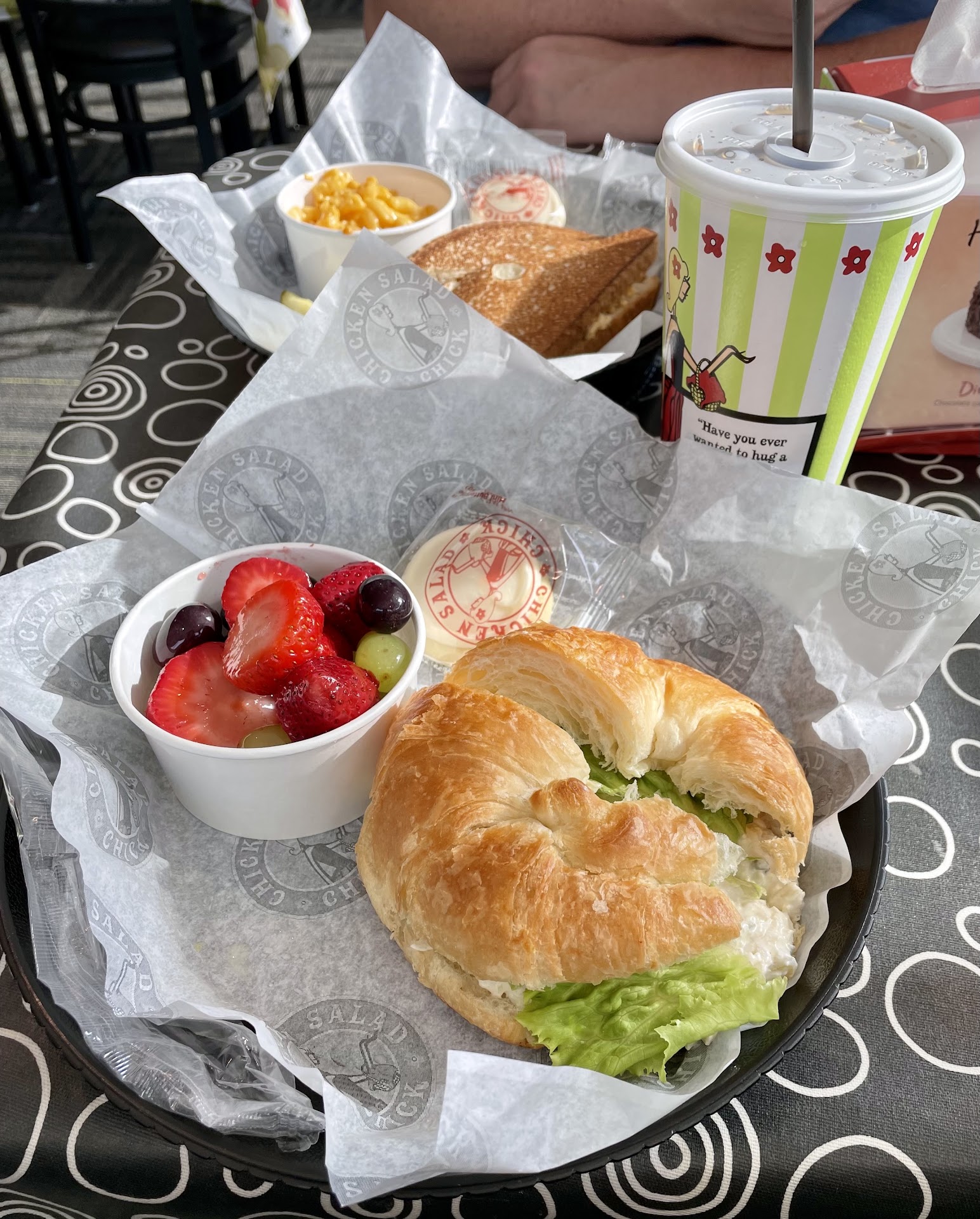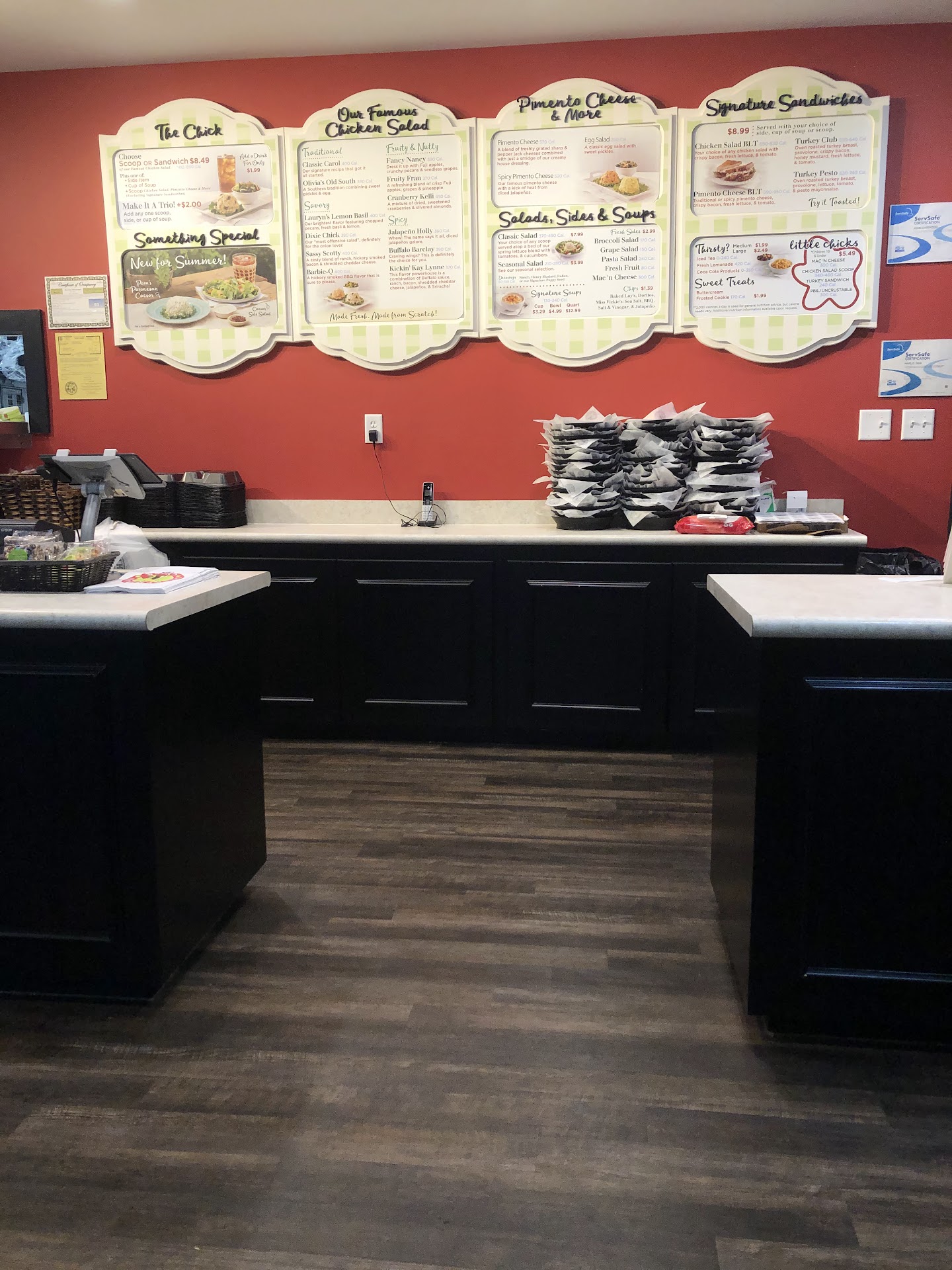 Considering not eating here again. I love chicken salad but the service here is subpar. My order has Been filled incorrectly on multiple occasions. One of the sides is missing, or it's a scoop instead of a sandwich, or they left the tomato and let us off when it was specifically asked for. Today was really the last straw. There were multiple staff standing around talking to each other or using their cell phones. There was no one else ordering food inside or through the drive-through and yet my food took twice if not 3 times longer to be made than usual... and I didn't get everything I ordered.