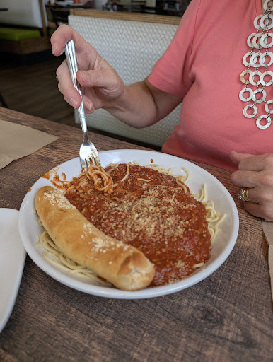 Okay. This is the third time we have gone here since they opened and every time we have had a good experience. But this time was exceptionally good. They were SLAMMED when I went in and the poor guy taking orders was dealing with everyone but he had a smile, and greeted everyone in a friendly manner. Everyone else was running all over trying to keep up. But they were all friendly as they ran by saying excuse me and smiling. I had more breadsticks brought to me than I could ever eaten all by different people, all nice. I got up at the end to grab a to go box and more drink but had to wait for the drink bc again it was crowded and when I got back to my table they cleared my food off. I was about to die bc I had over half my food left. But I caught the lady cleaning the table but not the guy who took the food and it was Long gone. She asked a manager if they could help me and she jokingly said NOPE. THEN LAUGHED AND SAID I'M JUST KIDDING BABY! GO GET HER FOOD! 😂 They asked me what I had and I told her it was really just spaghetti at that point bc I ate the chicken. And she said but what did you have?? I told her chicken parm but with meat sauce... Y'all, they made me a WHOLE NEW CHICKEN PARM!! Packed up breadsticks and apologized again for taking mine. I told her but I really didn't have all that left.... But she said but don't worry about it. We are sorry that happened!! Have a great day!! I laughed and said thank you and hey, at least they're on top of keeping tables cleared off, so...