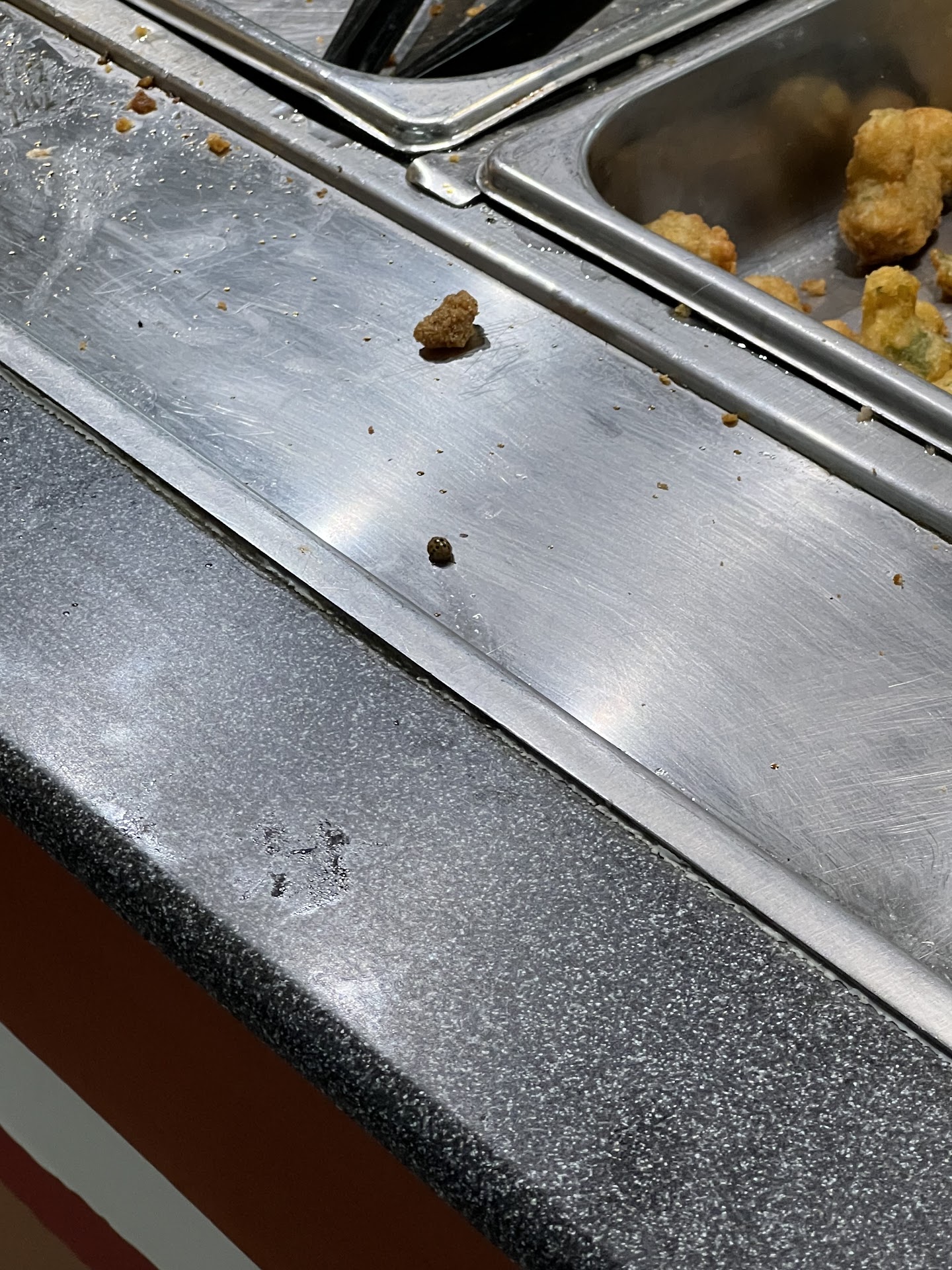 They both have two different current temperatures and have been out for completely different amounts of time, allowing for food contamination to happen now faster with the new food. Also, it didn't seem to matter that other food had fallen into another when they mixed it together. Maintaining quality here does not seem to be a high priority. We have been reminded of why we never go to...