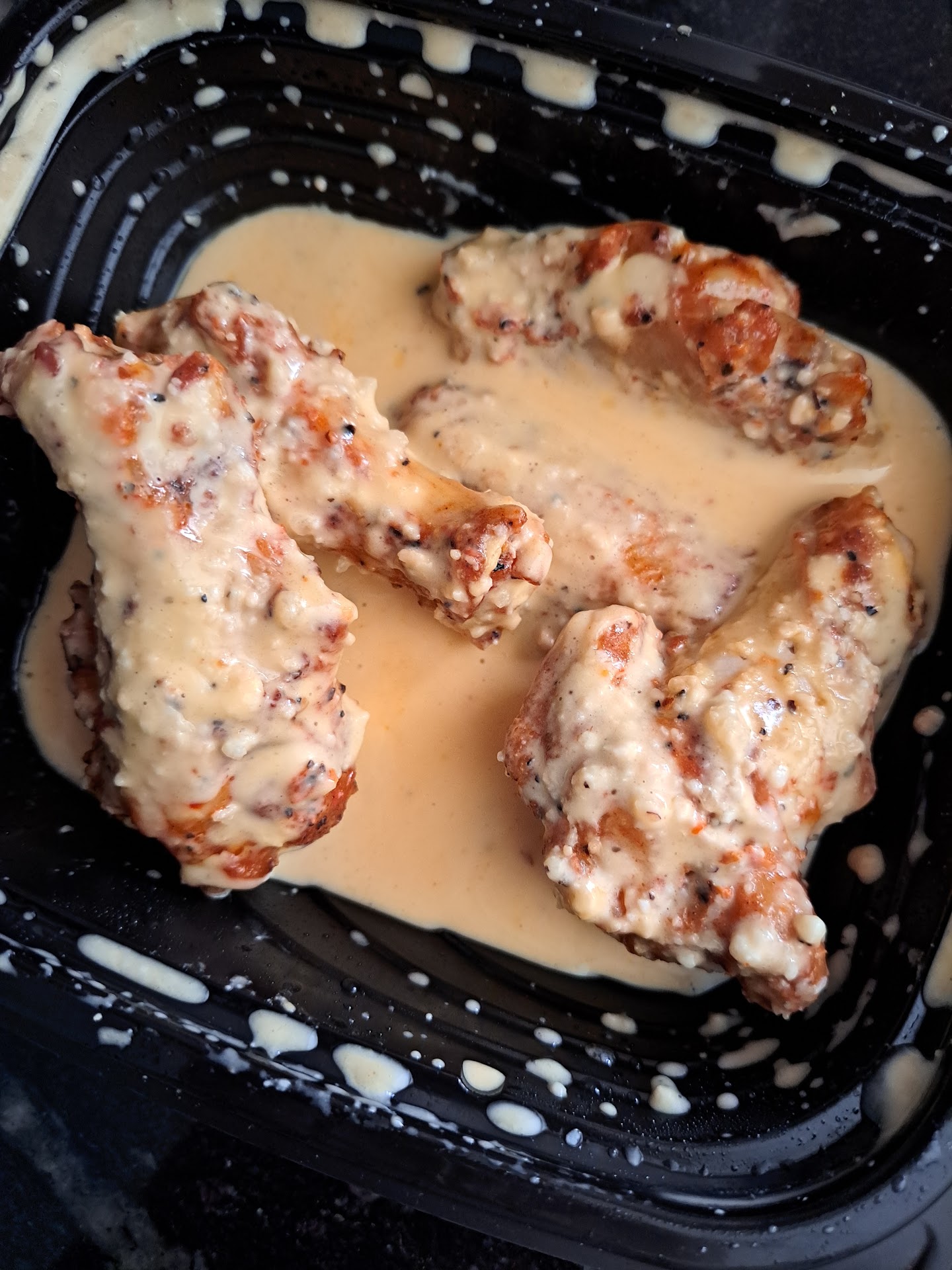 We ordered Garlic parmasean wings, classic Buffalo wings, Bread sticks and pizza bread., We ordered on line ,it said to give them 20 to 25 minutes. We got there within the time frame. Picked up order,paid for condiments ! We did not get! Got home . The Garlic wings were sitting in the container of milky slop, I have never seen anything like it. I called the store ,the employee who answered the phone told the manager..We have another complaint. I told the manager and he said it was our fault we waited to long to pick up. I told him we waited the time frame they gave us. I told him I took pictures. I would have checked the order But i didnt go in. . All the manager wanted to do was argue. I told him I would just call corporate. The other part of the order was fine but the Garlic wings were not edible. He...