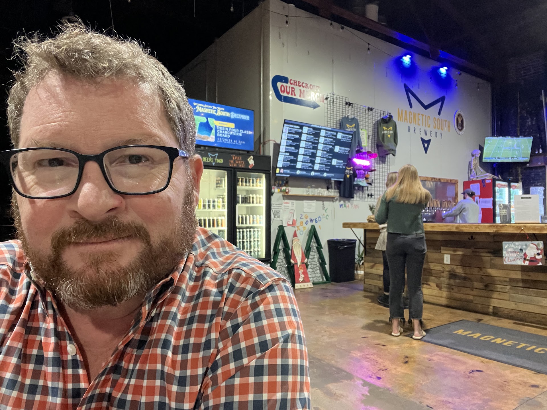 Tasty beers, friendly service, lively environment. Great taps in the heart of Electric City- Anderson, SC! Visited with my father-in-law, who likes beer but doesn’t have a lot of experience with different styles. Jeremy patiently put together two flights of four pours each so we could taste a broad range of styles. Standouts in the lighter coloured styles were the Hitman Hops IPA and the Moonlight Madness German Pilsner, which tasted like a late spring or early summer’s day. For the darks, the delicious Sweater Weather Imperial Stout and Quadzilla, a Belgian Quadrupel that really showed care and craftsmanship; both heavy hitters at 9.1% and 10% ABV, so we were grateful they offer 10oz. pours. The building is cavernous with a concrete floor, long tables, a small area for games, plenty of televisions to watch sports, clean bathrooms with infant changing stations (I mean, I assume the women’s bathroom has one, too), and there’s a decent bar menu that favours pizza; would be good to see wings on there, in the future. The staff are friendly, knowledgeable, and efficient; counter service only, when I visited, so you might encounter a line for your drinks (but not your food). Saw lots of young couples, folks with their dogs, groups of friends, and tables with grandparents, parents, and grandkids. My son liked his Mexican Coke and cheese fingers; would be great to see a Magnetic South root beer or ginger beer on the drinks menu and the retail case, in addition to Coke products. They carry non-alcoholic Athletic beers, which I was happy to see- excellent alternative to beer with alcohol (and low calorie). Bought a couple of Stouts, a Porter, and a Dubbel Bock to take home and share with the guys. Go get to know this...