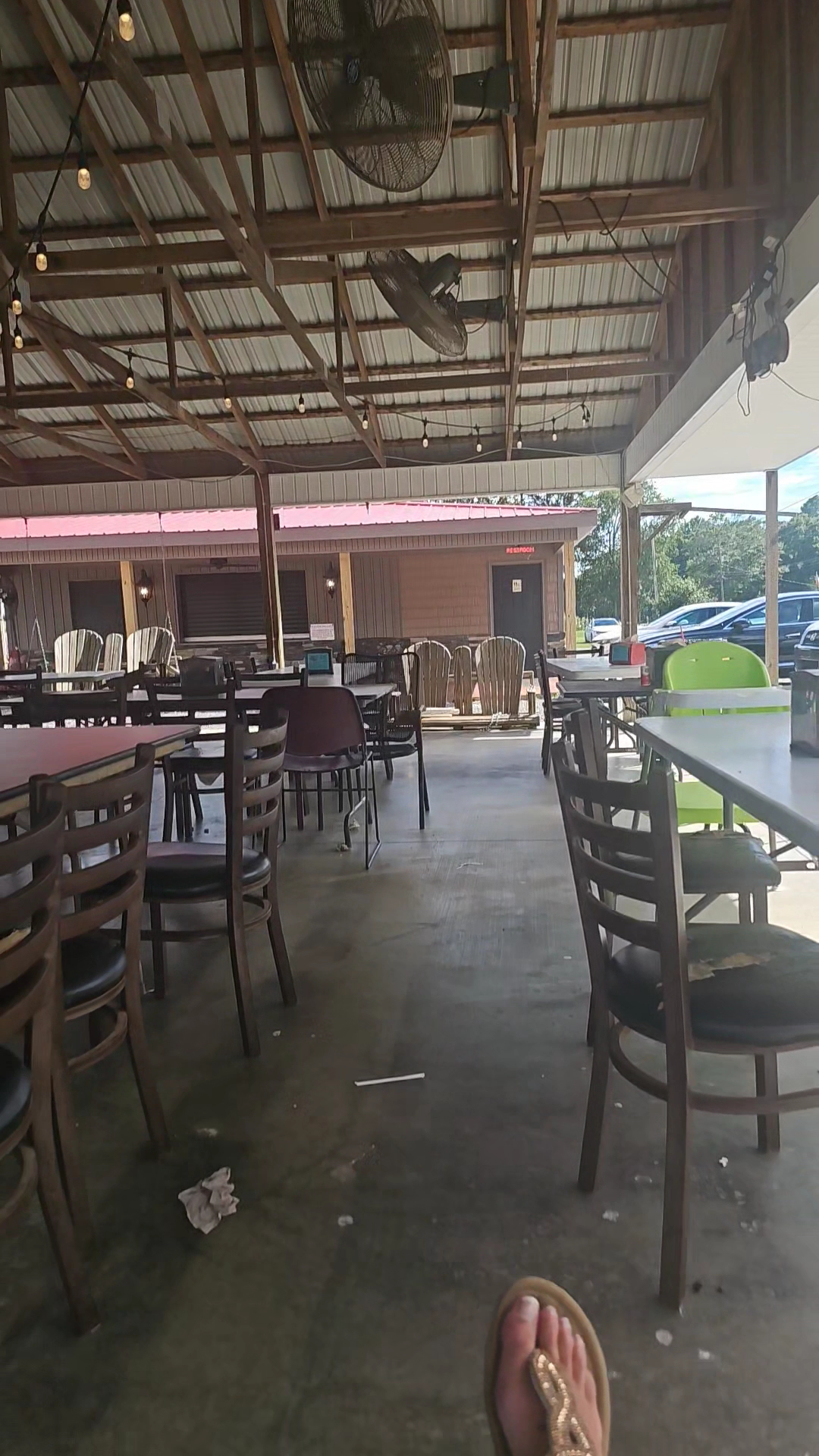 Marty's offers stew on certain days. I took a picture of the schedule for those interested. They offer beef stew, chicken stew, or goat stew, and it can be reserved ahead of time.. We enjoyed swinging under the covered patio even in this hot July heat. The bathrooms are separate from the actual restaurant, but they're so clean and spacious. It's the perfect setup.