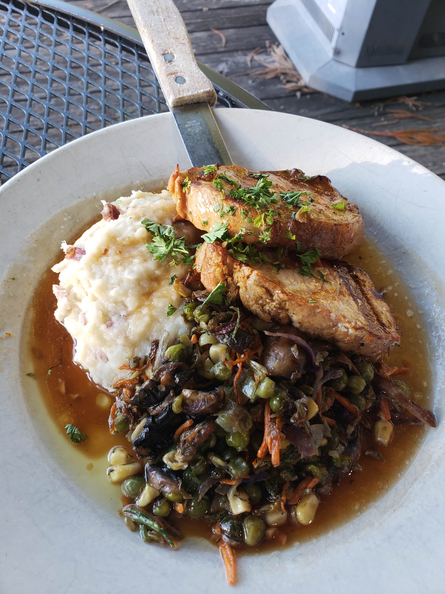 Once seated, I noticed that there were no drinks of any kind listed on menu or on table. No beer list, wine list, mixed drink list, or soft drink list. Nowhere. Is this a Pub? Oh well, we ordered sweet tea. My wife ordered the “Deluxe” (lol) Shepherds Pie and I ordered the Guinness Pork Chop. Entrees did not offer side salads or bread. But, they were available as separate purchases on menu. Meals arrived in about 5 minutes after ordering, no lie. First impression was sad, pitiful, and confusing. Both plates looked and tasted like what you would get at an average catered meal event. Explains the quick order time?
