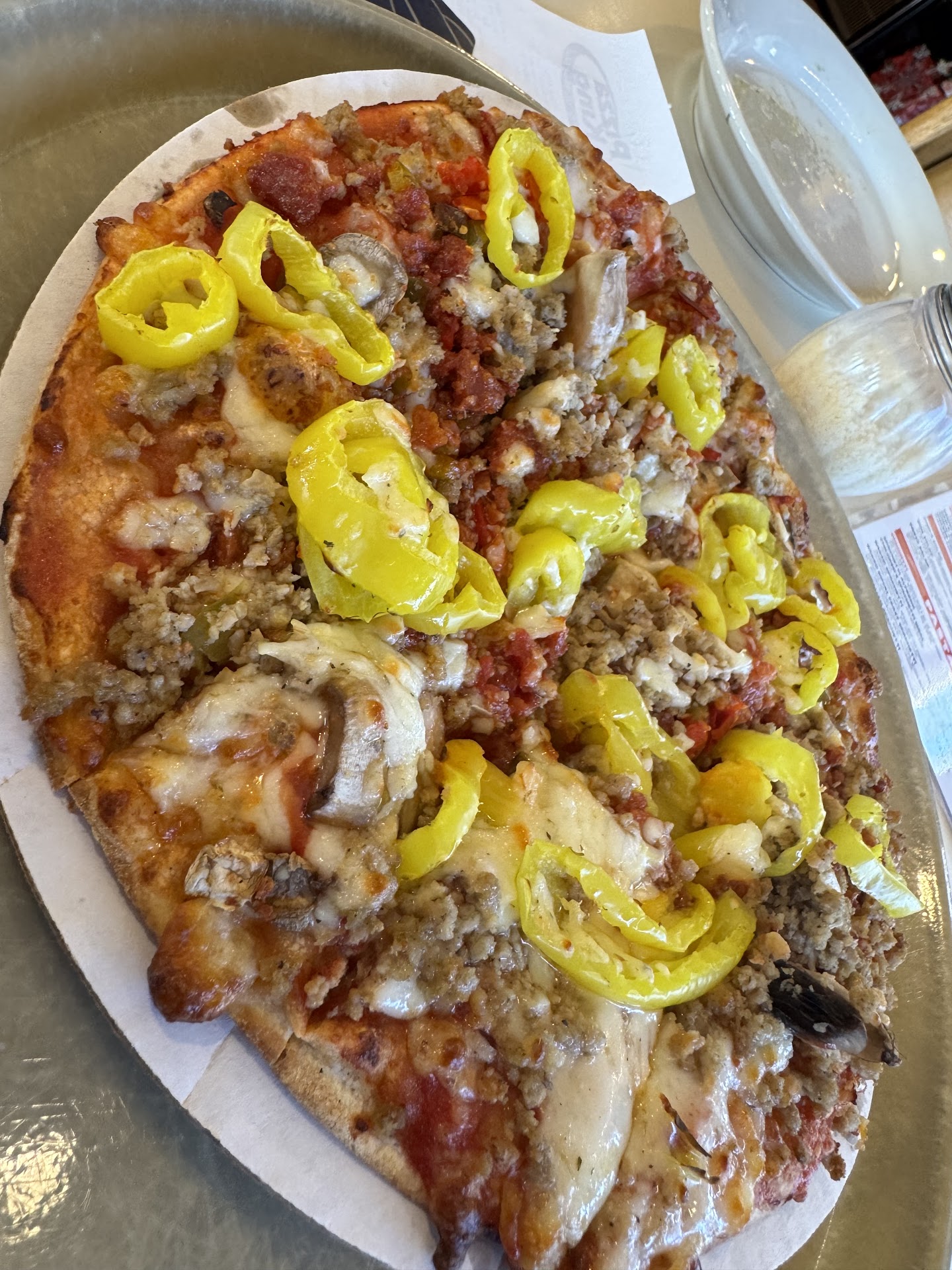 Read moreStopped while driving back home to Kentucky, second time I've been to one of these franchise within this area while visiting Uranus fudge factory. My friend ordered a personal pan pizza and I got a stramboli wrap with bread sticks and garlic bread. I also got the strawberry lemonade but couldn't really drink it so replaced it with water. It was crazy sweet, I am pretty sure I heard my diabetes yelling at me when I took a drink so decided to not finish it. The garlic bread and bread sticks at these locations are super yummy. I also wish we knew what kind of pizza my friend got because I almost boxed up my stramboli wrap and instead got the same lol 🤣 it was Delicious! My stramboli wrap I ate a few pieces of, but it was pretty dry so I wish it came with some marina sauce vs me asking for some when I got my garlic bread. It wasn't enough but we still had a bit of a drive to go home so just boxed the rest up. Overall, good food. Would definitely not recommend the strawberry lemonade for anyone over the age of 13 tho, who can handle that Sweetness? 🤣 The waitress was amazing and I always appreciate people who laugh at my dumb jokes...