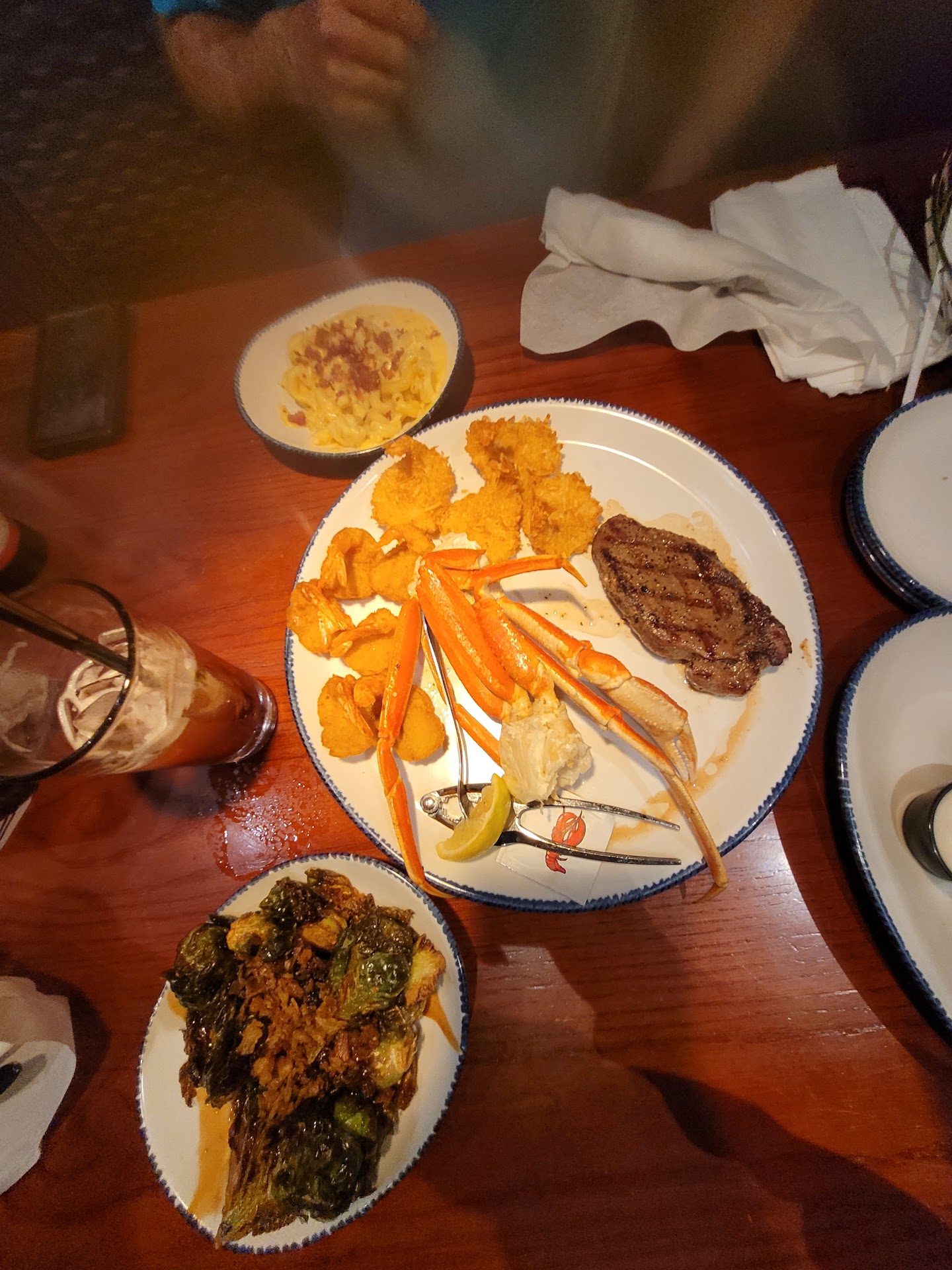 Read moreWent today which is Father's day. Was told it would be approximately 45 min wait. No problem we sat around the bar and chit chatted. We were finally seated after almost an hr. When ordering, their pop machine was down and was giving drinks from 2 liters. First thing we all know drinks are close to if not $3 or more and there is a huge difference in taste between the two. Not only that they were out of coconut shrimp at a time they have endless shrimp right? Go figure. On top of being out of broccoli and regular lettuce for salads. The salad itself is approximately what... $5 or more and it was literally all spring mix... now when we ask for a manager because now we've been sitting at our table for almost another 20 mins and no drinks or biscuits. Okay.... two servers no show one walks out (management issues??) Which we understand but now here we are another 20 mins in and still no order has been placed.... he didnt seem to care too much on the situation . finally got an awesome waitress that took over by the name of lateche n. She completely rocked it. She made sure to go above and beyond to make sure everything was right (after first waiter took order and we got the completely wrong meal). It was my mother in laws birthday and she made sure we had cake and ice cream. That young lady 9 months prego took a completely hectic situation and made it that much more enjoyable by the time we left. Had she not taken over our table and made sure we were completely satisfied we would have ended up...