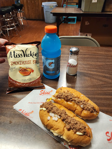 Best hotdogs hands down the chilli is great and don't have that stinking armpit smell all the other restaurants chilli has it actually smells good and taste even better it's actually the only place I found that has great chilli the rest of the places I went like Austin's hot dogs there chilli stinks like under arms/butt hole and taste the exact same way it smells but skins there the best so don't waste your time looking for a hotdogs to eat that don't smell like butt hole the only place you will find a great hotdogs with out the butt hole under arm smell is skins I actually could eat there every day no problem and it's the only hotdogs place I will eat from now tho I have not tried the restaurant called bite me wienerz hot dogs I could say without trying it that skins is better cus it can't get any better then skins they got...