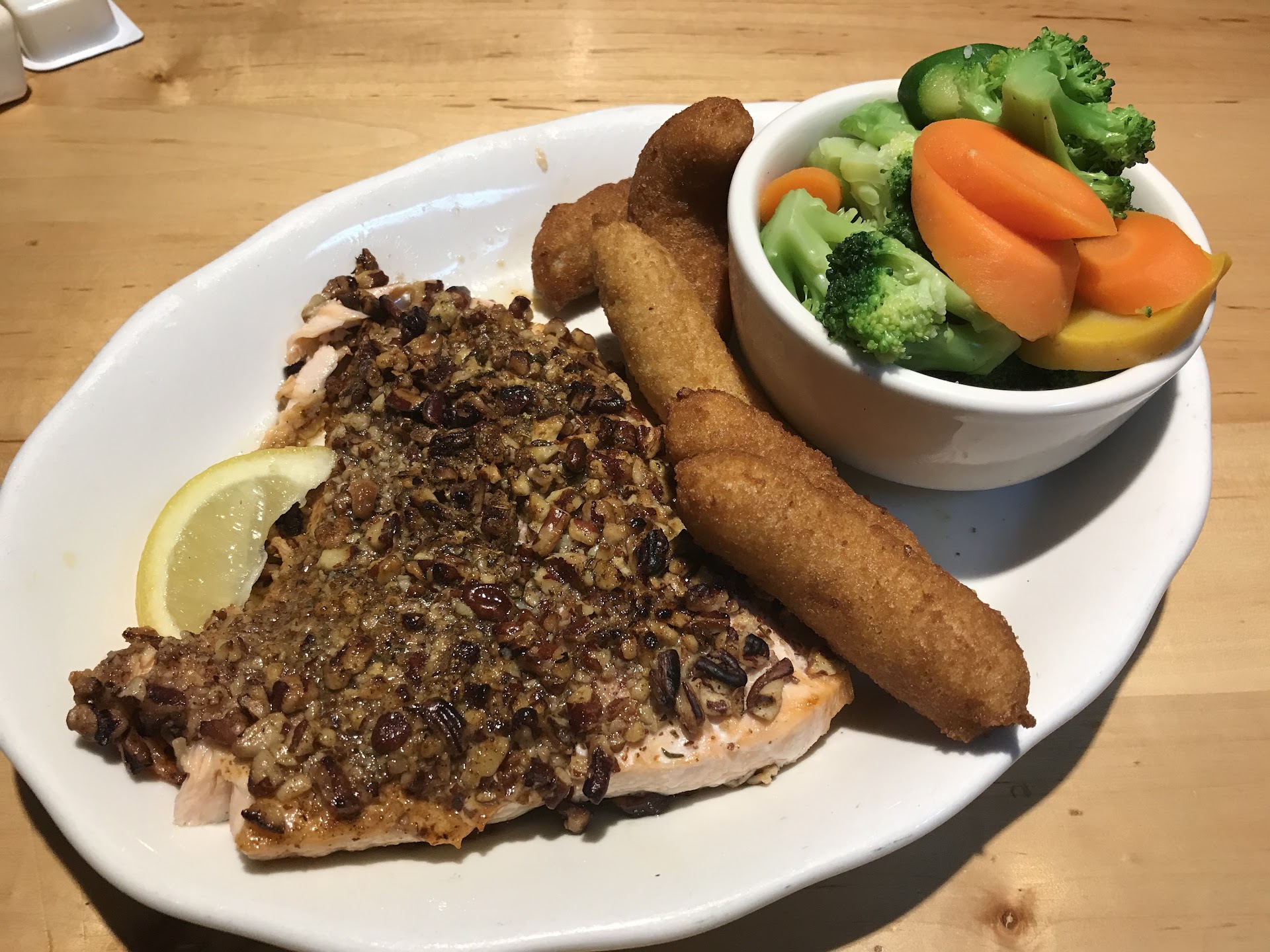 Read more2ND VISIT @ THE HOOK: First of all the service started off terrible but then the young server made up for it as the evening went on. He went in to hiding mode off n on our whole visit somewhere in the back and not on the floor waiting on his tables. I noticed all of his tables were looking for him with empty glasses...We Waited close to 8 mins b4 he took our drink order. I was getting mad. There was no excuse for his disappearance when he didn't have any tables when we got there at 5pm this evening. We did feel a little sorry for him so we did leave a $6 tip on a $60 check. He could have gotten 15% $8 tip if he was a better server. Some kids today just don't know how to wait tables. I do believe the manager could train the staff a little better. Next time make sure your server is NOT wearing a baseball cap when they are on the floor serving their guess!! Very disrespectful!! I hope THE HOOK checks their reviews and changes the issues to make their Resturant a better place for paying customers. The restaurant is very clean, warm and welcoming. Just train the servers and this place would be amazing. This place could be super busy and making a killing if the owner or manager would consider some training for the ones who needs improvement on the floor. This place would be a great family or couples night out. It's perfect for a romantic dinner. I'm hoping our next visit will be much better. The food was really...