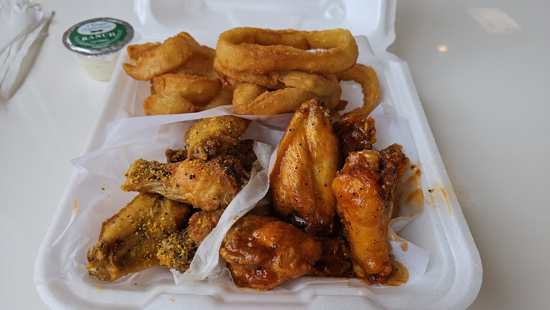 Read moreWide range of fare, including burgers and wings but also Philly cheese steak, gyros, fish and shrimp, fried rice, subs and salads, as well as chicken tenders. The party I was with had the bacon cheeseburger as it comes, chicken fried rice, and teriyaki wings. The prices are above fast food, in the Panera range but everything is apparently cooked to order and everyone liked what they got. Portions are generous The burger was described as how a homemade Whopper with bacon would taste, the wings were fresh and tasty and the chicken fried rice got the approval of our resident expert who loves the stuff. Personally I would pour on Sriracha and thankfully they have rooster sauce on hand.