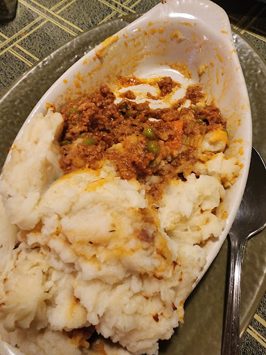 Read moreThe Cottage Pie was bland with a sweet undertone. The carrots in the pie were still crunchy, and the pees were overcooked. The mash on top was grainy and lacked any real flavor. The whole thing tasted like an American attempt at a dish they only heard about. The salmon lacked any flavor. The "sauce" on the salmon was melted butter, and even that could not save the fish. The veggies were blanched/boiled and soft. The rice tasted like it was made from a box of Uncle Ben's. The bang bang shrimp were clearly pre-made. The shrimp by far had the most flavor of anything we ordered. The sauce was clearly from the shelf of the local grocery. The kids' hotdog bun was toasted to the point it had become a crouton, and my child did not eat it. They did like the fries. The mixed drink was the best thing we ordered, and the only thing that did not leave us...
