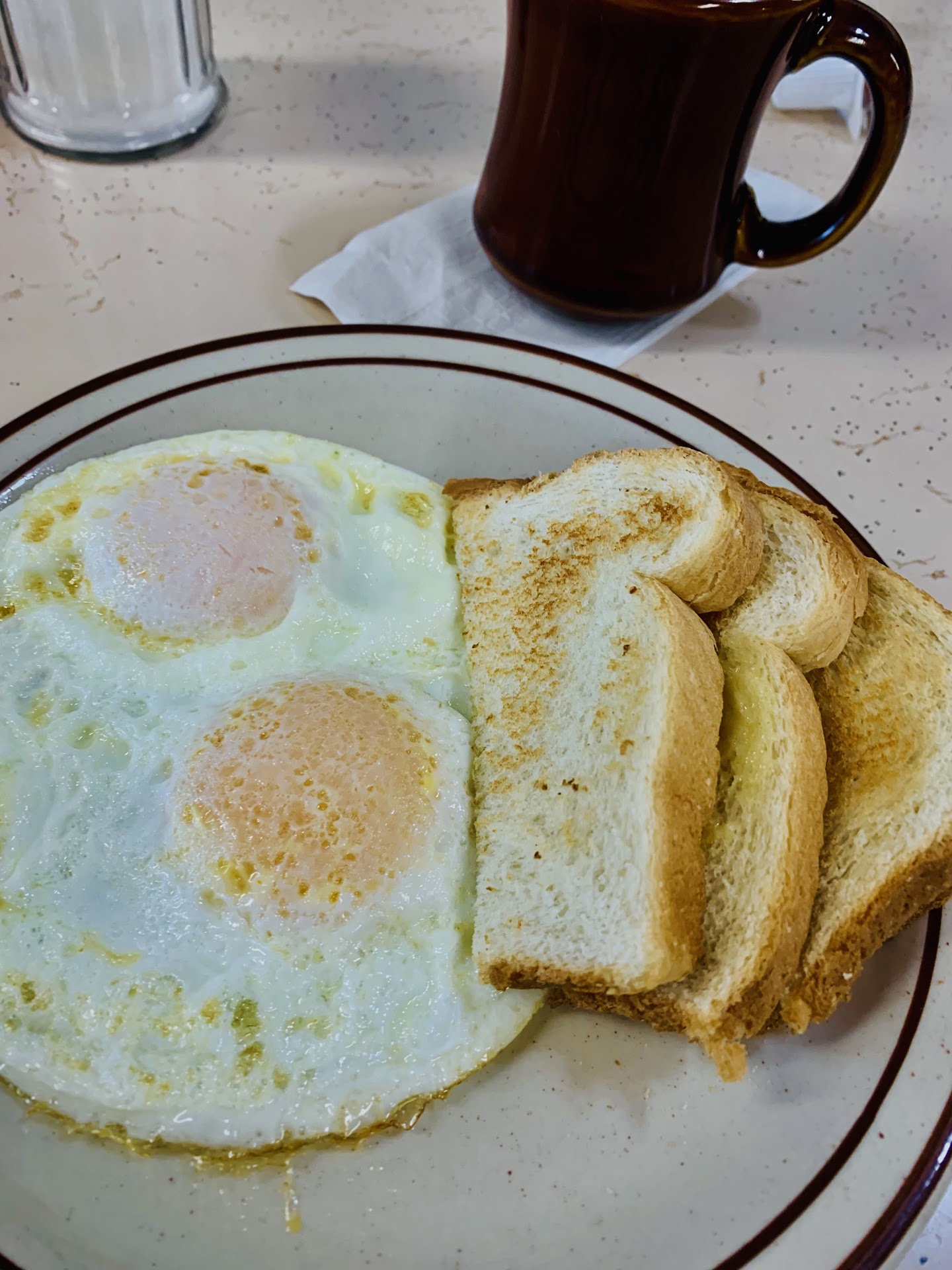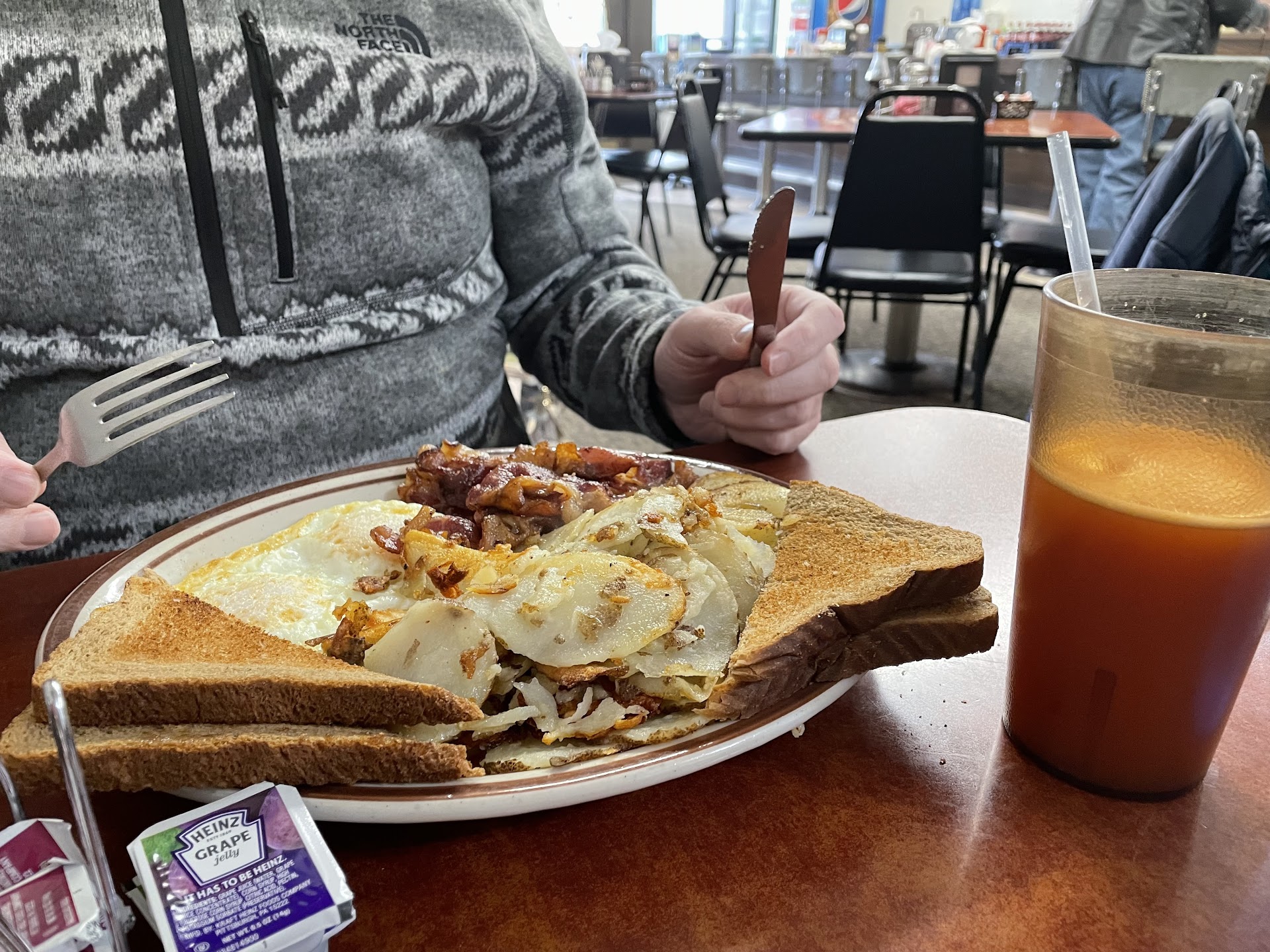 Read moreMy significant other and I went turkey hunting all morning (started before 6!), so needless to say after trouncing through thick woods chasing birds, by 9:30/10 we were ready for food! I ordered the steak/eggs/home fries, and my partner ordered a Western omelet and hime fries. Both of us were VERY impressed by the speed our food was ready, the quality and taste, and the price!! The only thing I didn't like at all was the coffee - just too watery and weak for me. But the water did NOT taste like chemicals and...