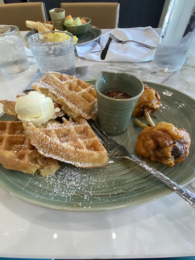 Read moreI was very excited to try out this place by the redbud trail where me and friends always go for runs. I think the concept is a great addition to the redbud trail, almost like a stop shop. The service was good, and the building itself is a great open design so I was excited for the food when I was sat down with my family. The brunch menu itself was very limited but I was not disappointed because I understand a simple menu is key to running great quality food. When I asked for the breakfast pizza I was informed that they were out of the dough and could not make that at the time. I tried the stack of pancakes, followed by the disappointment when informed that the pancake batter was not available either at the time. This made an already limited menu, even more limited. I settled on the chicken and waffles, with a side of the potatoes. Being one of the more expensive items, I expected a large meal that tasted great, instead I got 2 goofball size chicken wings. Not even 2 full waffles, just one waffle cut into 4 quarters placed atop one another to appear largerand. I could not believe that this plate had cost me $16 alone for the size of the portion. The food itself was above average, not bad but nothing special. The potatoes on the other hand, were the most disappointing part of my visit over all things. Unseasoned, deep fried, unevenly sliced. I could not decide if I was given potatoes or a sort of natural cut fry. While not burnt, the potatoes were nothing more than like biting into a soft piece of cardboard. I cannot believe this plate cost me $16 with the taste of a microwave waffle and chicken meal. I will not be coming back to this establishment again because I know that places like this do not change their prices or portion sizes, always trying to take as much money as they can get. I really wish that they wouldâve put a better company here who cares more about...
