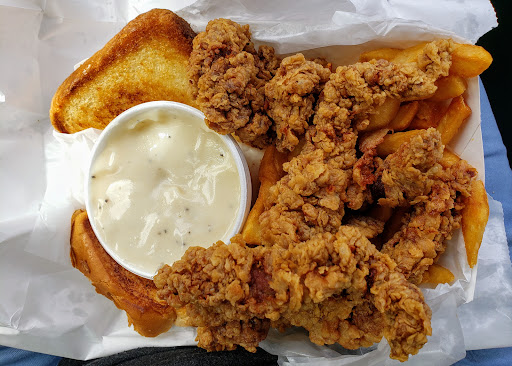 The steak fingers are literally steak. Imagine chicken fried steak that you can eat while driving.
