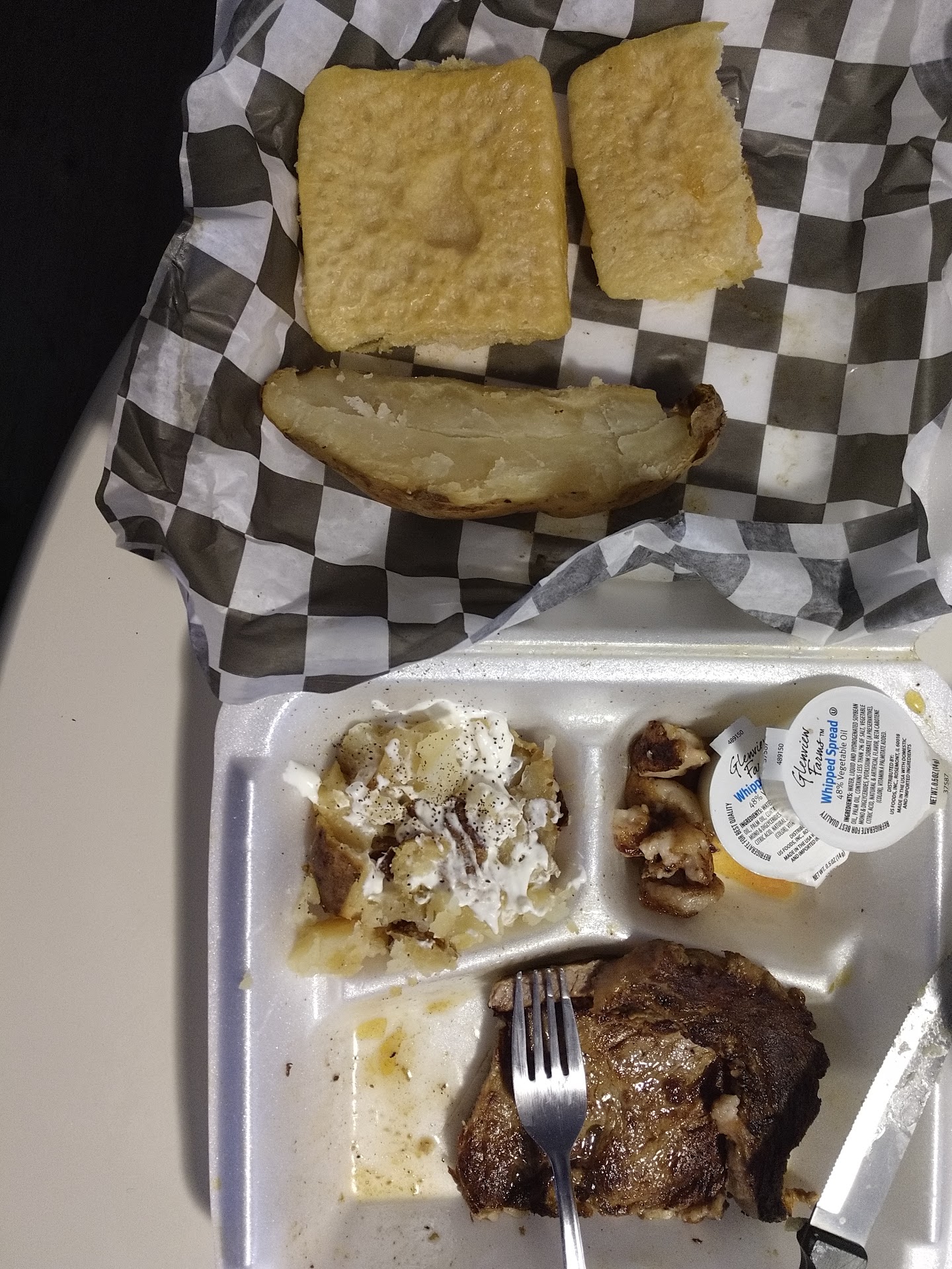 It was awful! We were greeted politely and thats about all good I can say about it. Once our order was taken the server & I discussed a side and was told if I didn't like it they would give me something I did. However I never got the chance to tell her anything. Dropped off the food and I didn't see or hear from her again. After about 20 minutes we were ready to go. I hadn't touched a bite. Why? Never got any silverware. Children never got any ranch for chicken tenders and the servers answer to that was " well I just thought she wanted ketchup ". Sure for the fries but she never checked on us. The worst part was when the server sent a crabby old white haired skinny lady to the table she said it was my own fault for not getting up a getting some silverware. Really? It was my fault the kids didn't get ranch sauce or tea cause I didn't get up and seek it out. Really? The older lady's answer to the problem was to take the cold soggy food and put it in a takeout box for me. I said no,not only am I not eating this cold food, I'm not paying for it either. The onion gravy had uncooked onions on it and the okra was soggy. Each! She yelled out in the dining room as she went to the kitchen angry " well alright then!!"