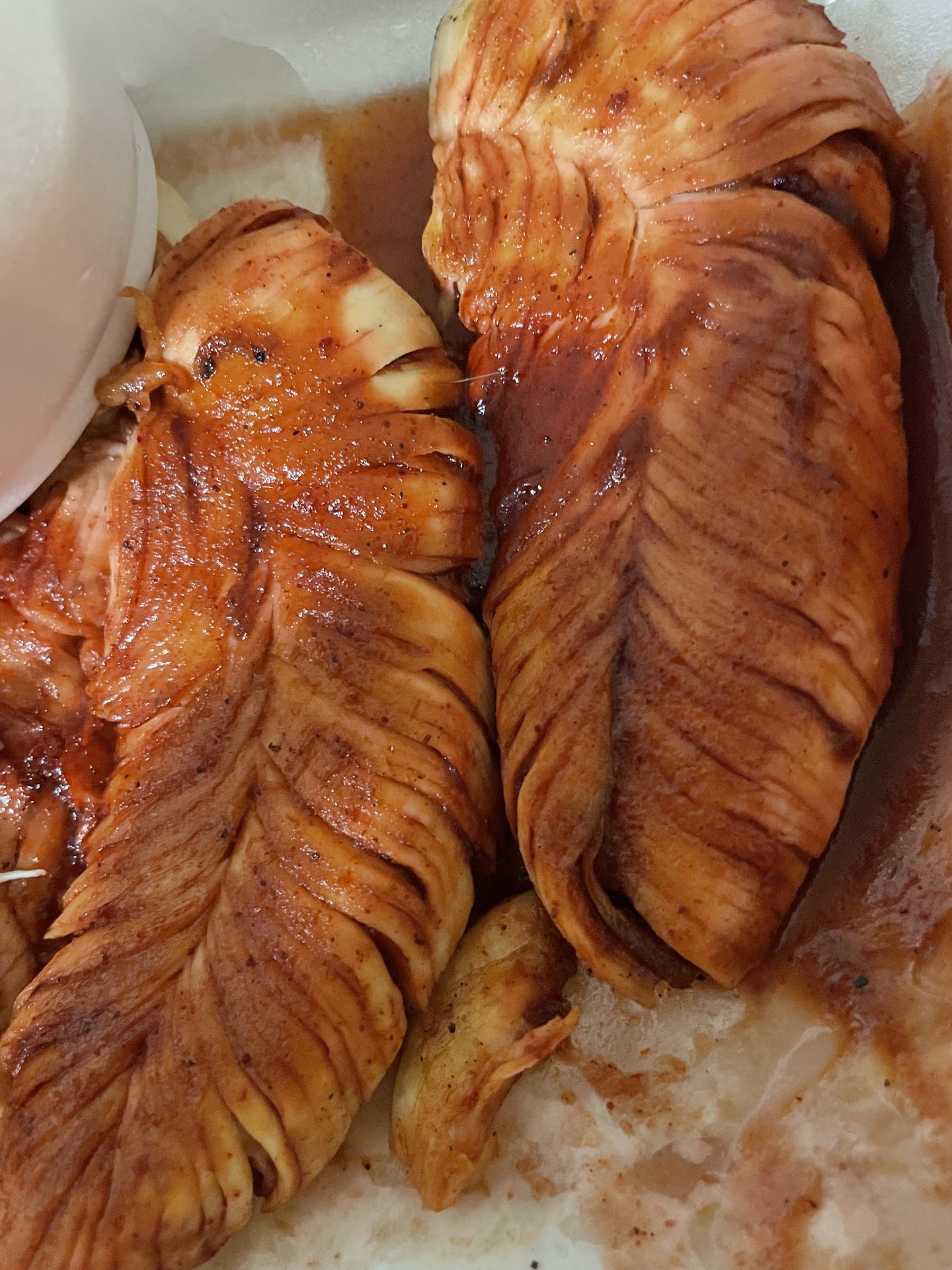 I have celiacs and IBS and this limited my options on food and I get over whelmed at times. When I got my chicken breasts they were delicious. The sauce, BlackBerry BBQ was so good, the chicken was nicely cooked and tender! Just perfect. Also good fries and coleslaw!