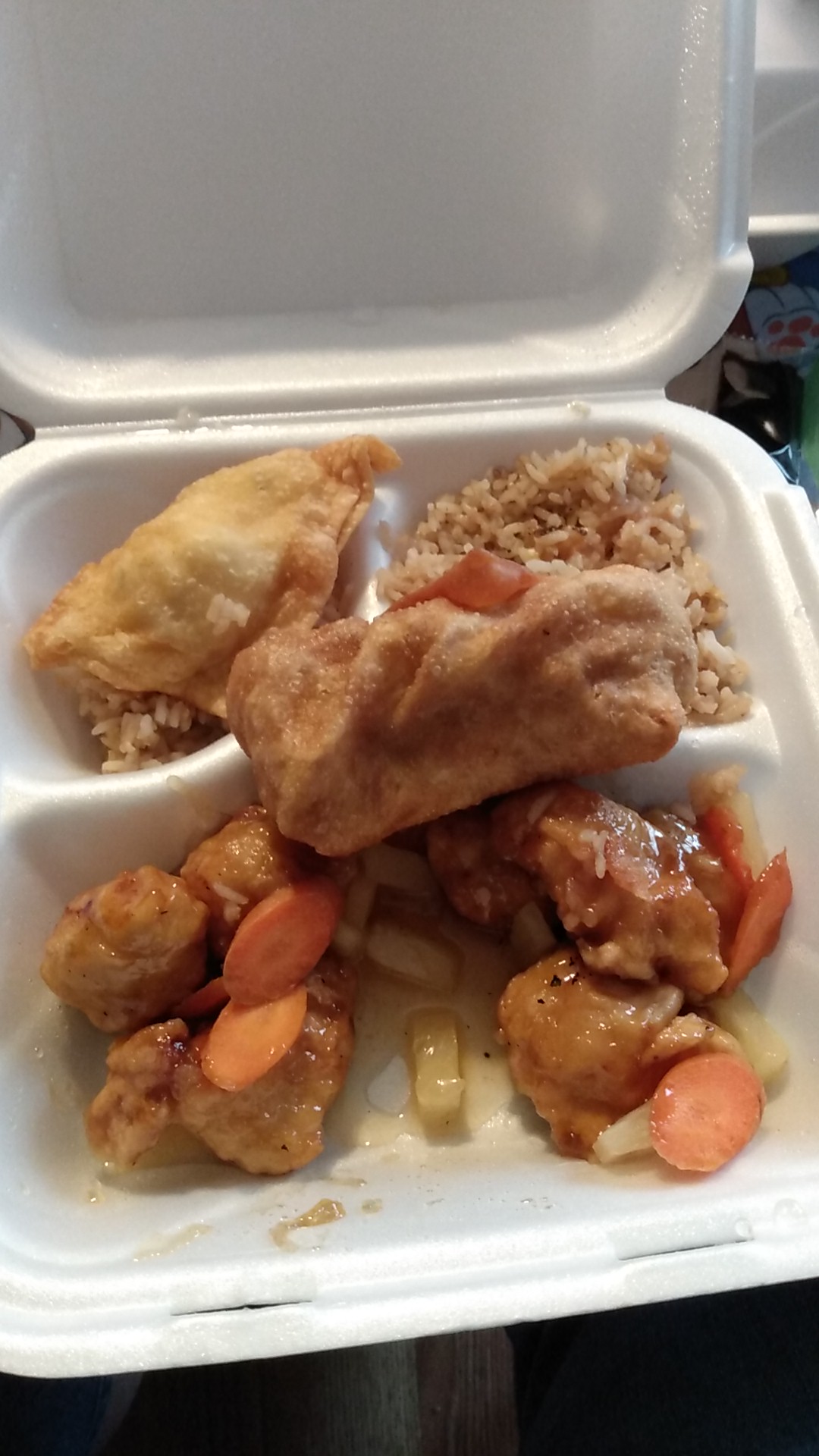 Read moreI hate to leave such a bad review because the woman who took my order was very friendly and helpful. Unfortunately the upkeep of the restaurant and the quality of food were not great. The building itself is very old and the inside is extremely outdated. There was no A.C. through the building only a space unit, there was a random assortment of kitchen utensils for sale on plastic racks, very old display case with cultural trinkets and porcelain figures but every single thing had layers of dust! They had beautiful round hanging lanterns that even had dust on the bottom! The food was a bit strange, chicken lo mein was more of a creamy pepper sauce, sweet n sour chicken was a watered down pineapple flavor and the general tao didn't have a distinguished flavor? The breading on both chickens was mushy around the chicken itself and slightly crisp on the outside. The fried rice seemed to be half of a scrambled egg and soy sauce, the white rice was fine. The prices for the meals was reasonable for the times and I should note it is carry out only so I have not mentioned more of the dinning room. Overall I do not recommend...