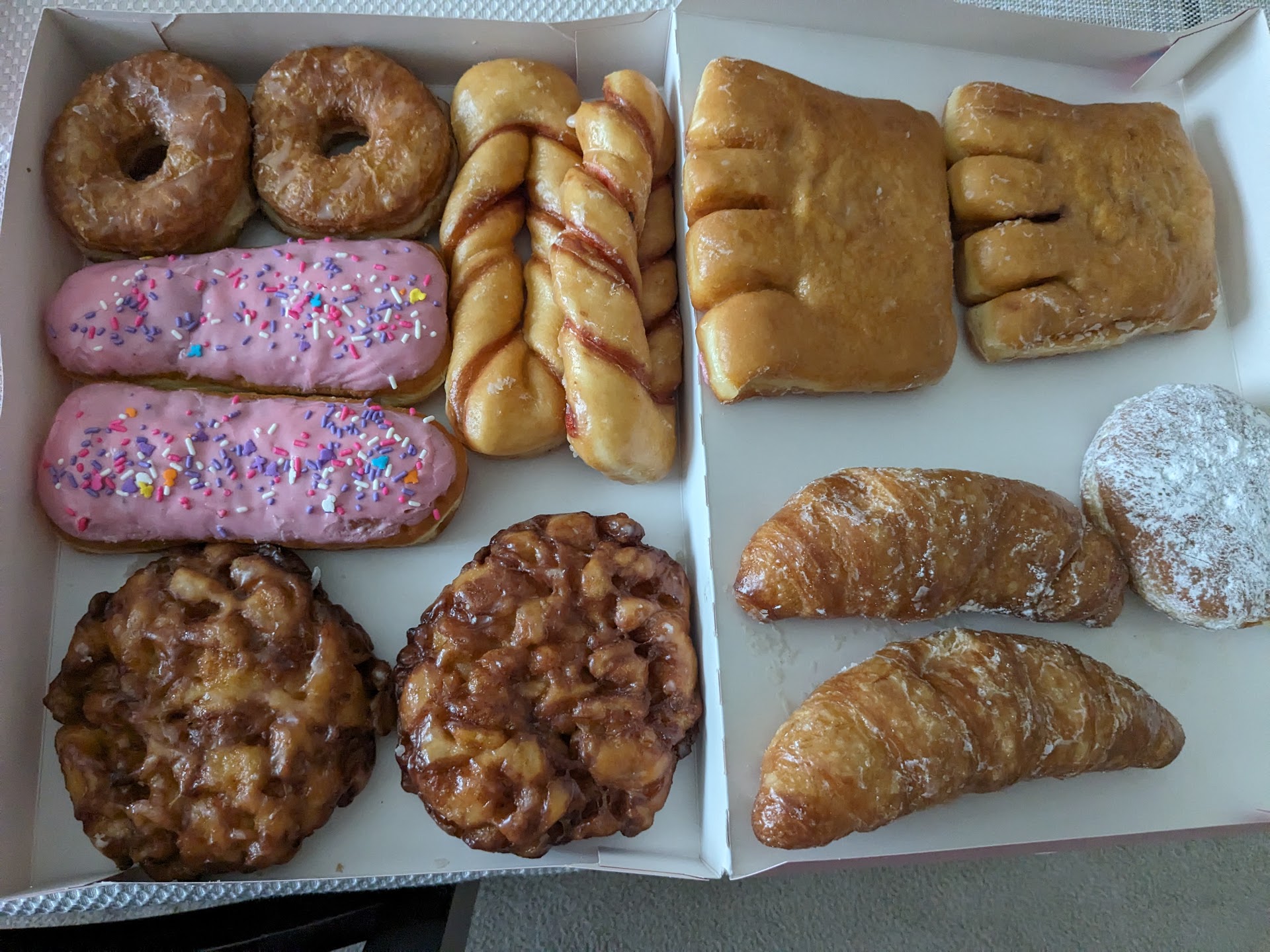 Ambrosia doughnuts are fantastic! However, my service experiences are poor at best. My 17 year old son picked up 24 in total. We requested 6 long johns, 6 cronuts (no one makes them like they do here anymore and they are sooooo goooood ), 6 vanilla frosted bismarks cream filled, and 6 maple frosted bismarks cream filled. The order was fine except; they were short one bismark so they gave us a long John filled, and only 3 of the 11 bismarks were filled. We paid for filling! I believe we were overcharged in the first place. I called and the owner said she'd give us 6 at no charge to make things right. My husband went back the next weekend to pick up the 6 free bismarks and the person up front gave him two boxes of doughnuts and charged him for them. He told her that it wasn't his order because there shouldn't be any charge and we shouldn't have that many. He asked her to check with the owner and she headed back but turned around half way and she came back telling him this was our order and he had to pay for it. The owner wouldn't come out and verify or apologize like most would and do. My husband brought the doughunts home and when I realized what had happened I called the owner back. She told me we got the wrong make up order and she accused us of making the mistake and how she had to redo the other order again. I asked her about our redo and she said it was our fault we got the wrong order. I told her we told the person up front and how the person wouldn't hear of it and charged us for the order. I told her we paid for the wrong order that was supposed to be a redo at no charge because we were charged for filling we didn't get. She said it was our fault and complained that it was our fault she had to redo the other order. I told her it was her staff that she needed to have a chat with because they weren't doing their job. She stood by her staff and refused to make things right. So, as good as her product is, the service gets the poor mark because it's not right to treat customers...
