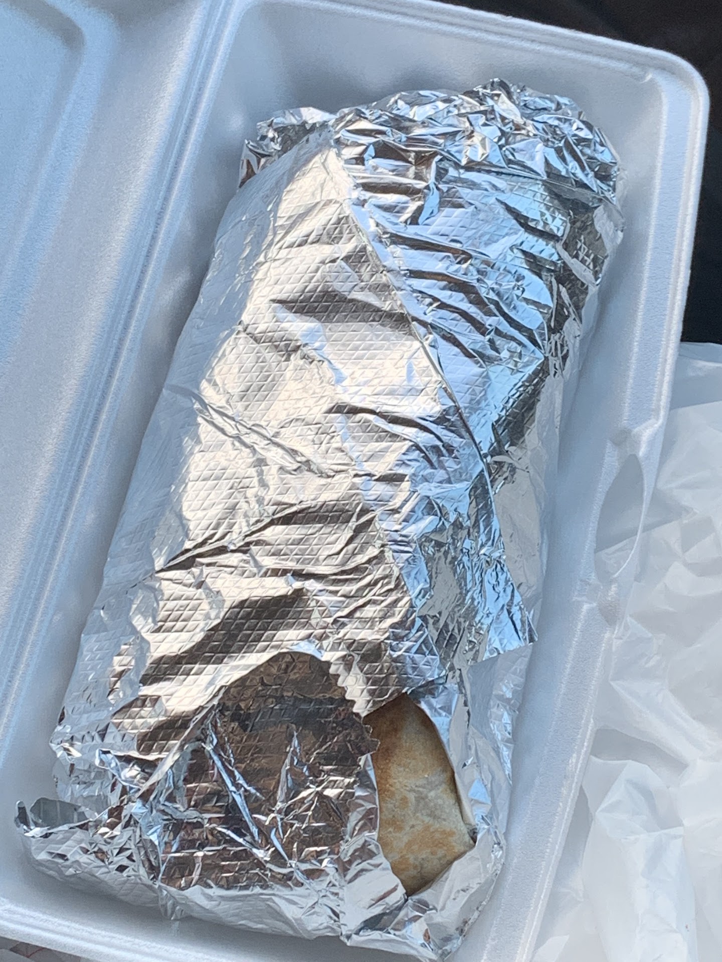 The Burrito was still warm (as were the chips) when we got home, and we each had about 1/3 of a Burrito left for a snack.