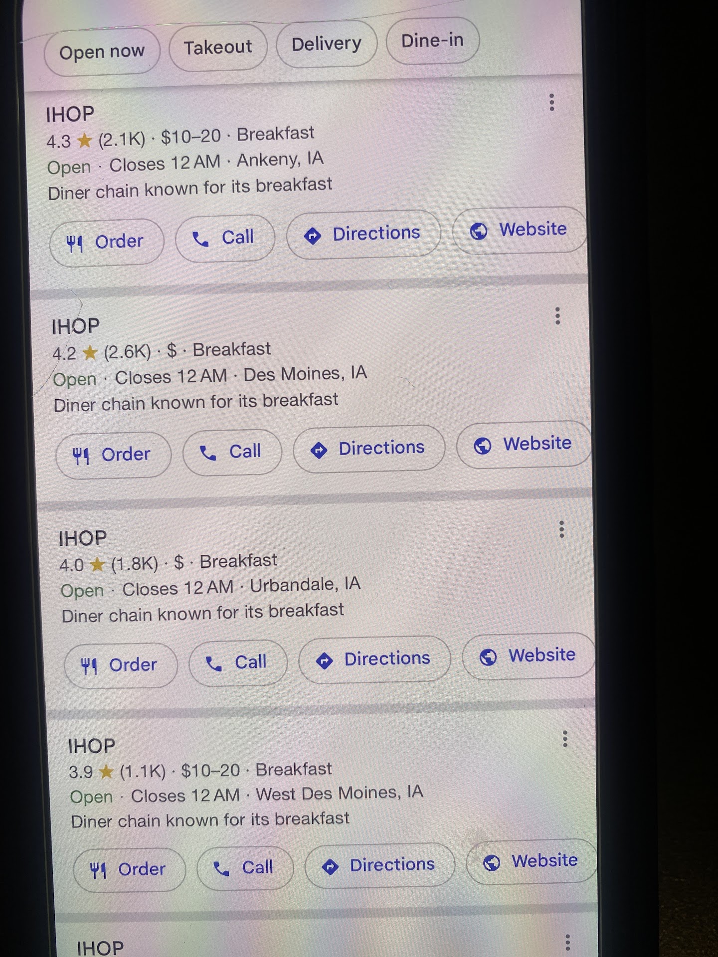 Read moreWe came at a busy time and they told us to give them a few minutes. We finally got our seats after around 10 minutes. We sat down and around four minutes later a woman came up and asked us for what drinks we wanted. We got the drinks pretty quickly after, then a few minutes later she asked us what food we wanted. We told her and we waited there for an hour without ever getting our food. We saw many families that we came before getting their food before us. My son counted 5 families. FAMILIES. A person who had came after us and got their food before us even noticed this and talked to the manager of the ihop and was talking to her about how it shouldn't happen and doesn't make sense. She simply apologized to him and said "our food would come shortly". We waited 10 more minutes. Nothing. Pissed off, we grabbed our things and walked to the doors and simply left. I can't tell if this was racism or what? I am a hijabi and the staff helping us were white Americans. Like I genuinely don't know why many people got their food before us??