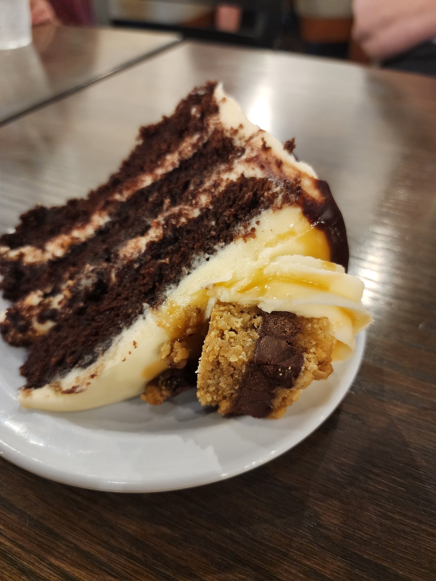 This place has quite a neat setup. We ate here while passing through. It was insanely busy so that wasn't exactly great for us (we have small children and it was very loud with all the business), but I could see this as a great place to go on a date or out with friends. The menu was geared to healthy choices, and we all enjoyed our food. Their dessert selection is like having to choose what delicious, beautiful item you want from a bakery. The food being good and the impressive dessert selection is why I gave this place as high as 4 stars. The reason I couldn't give it 5 stars was for 2 reasons. This place is expensive. It was way more than I would expect to pay at a cafe. Yes, we enjoyed the food and it was healthier and made well, but with the portion sizes being as small as they were, I felt like the prices were not exactly reasonable. The 2nd reason was because we ordered chocolate milk for our kids, and it was bad. Like really bad. Our 5 year old wasn't drinking his so we told him as expensive as it was, he needed to drink it. He asked me if I remembered what the giraffe enclosure at the zoo smelled like. I was like, "yes..." He then explained that he tried so hard to drink his milk, but it tasted like the giraffe enclosure at the zoo. Hilarious, right? He wasn't kidding. I tried his milk and proceeded to laugh hysterically at the most fitting description that this milk could have. It wasn't funny, not really, because it was so appalling but it was so well said that it left me in giggling tears. The manager on duty (I think he was the manager) did seem quite unhappy about the situation and offered to pour them new drinks, but since we were basically finished with our meals at that point, we declined that option. We had already paid (you pay at the counter), but no other compensation was offered. This milk was rotten. A refund of the milk at the very least should have been a given. It was just a disappointing way to end what would have otherwise been an...