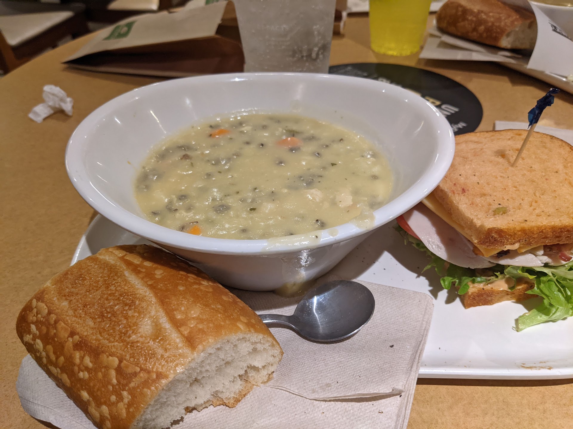 Overall, Panera isn't what it used to be. Baguettes are smaller. The bread and cheese is sliced thinner, ingredients have changed making the bread taste as mass produced as Subway's. The prices continue to grow to pay for executives lifestyles, no doubt. It's cheaply made soup with bread, food once considered to be eaten by the poor. For a turkey sandwich, the cheese is now cheddar instead of Gouda, and sliced half as thick. The tomato basil bread has only remnants of strussel-like sweet topping on it in part because the bread is sliced half as thick as it once was. And you'd think the lettuce and tomato cost them as much as saffron- the most expensively priced seasoning in the United States.
