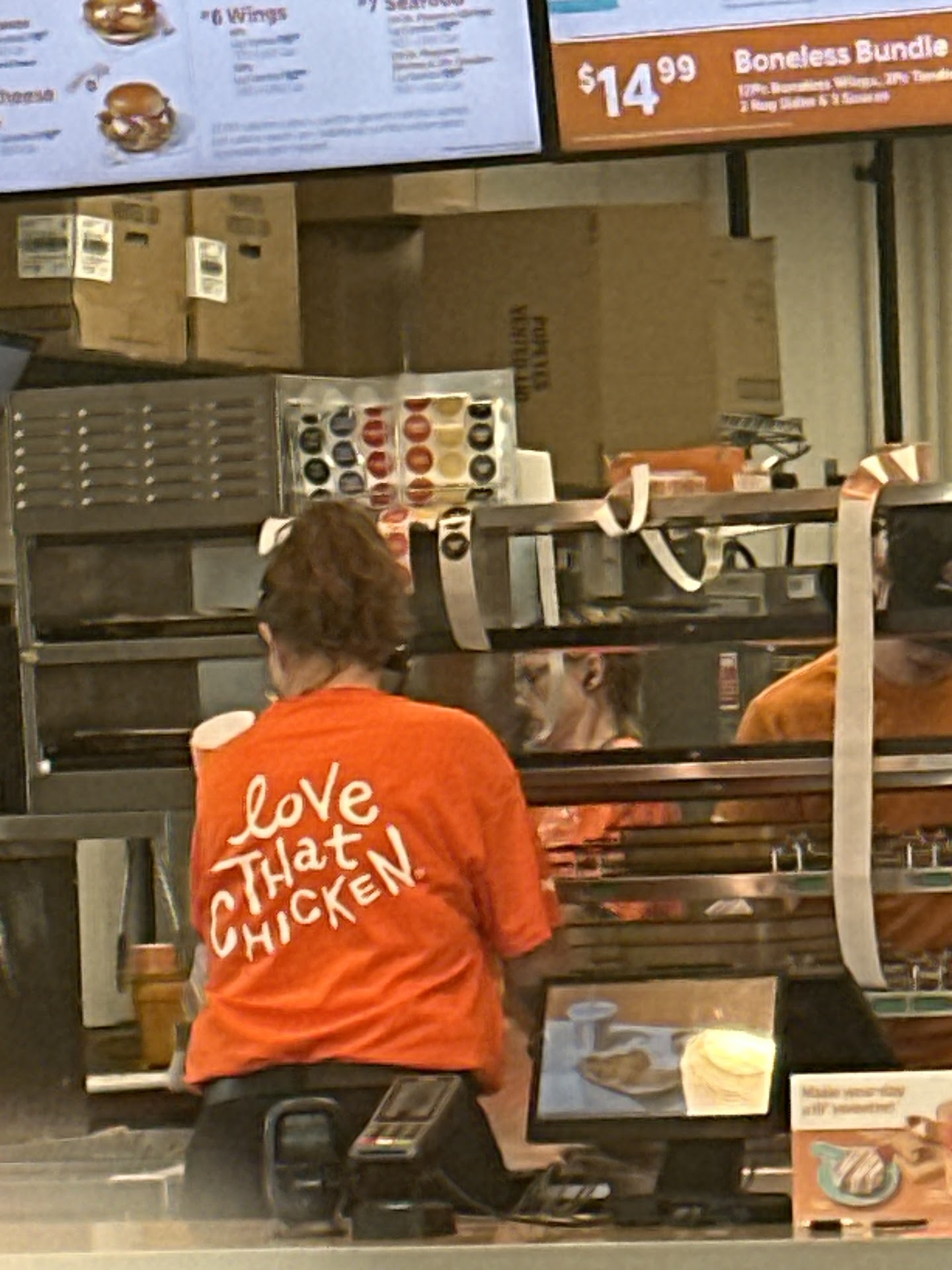 When working there, they never preordered anything. Who sells shrimp but doesn’t order cocktail sauce? Oh yeah, this Ankeny Popeyes location. The warmers are supposed to set a timer to know when the food needs to be thrown out, I haven’t seen anyone set those timers. They pre-make the chicken sandwiches and they sit in the warmer getting exactly as everyone mentioned, soggy. If you order a chicken sandwich with no pickles, the workers legitimately just pick the pickles off and rewrap the sandwich.