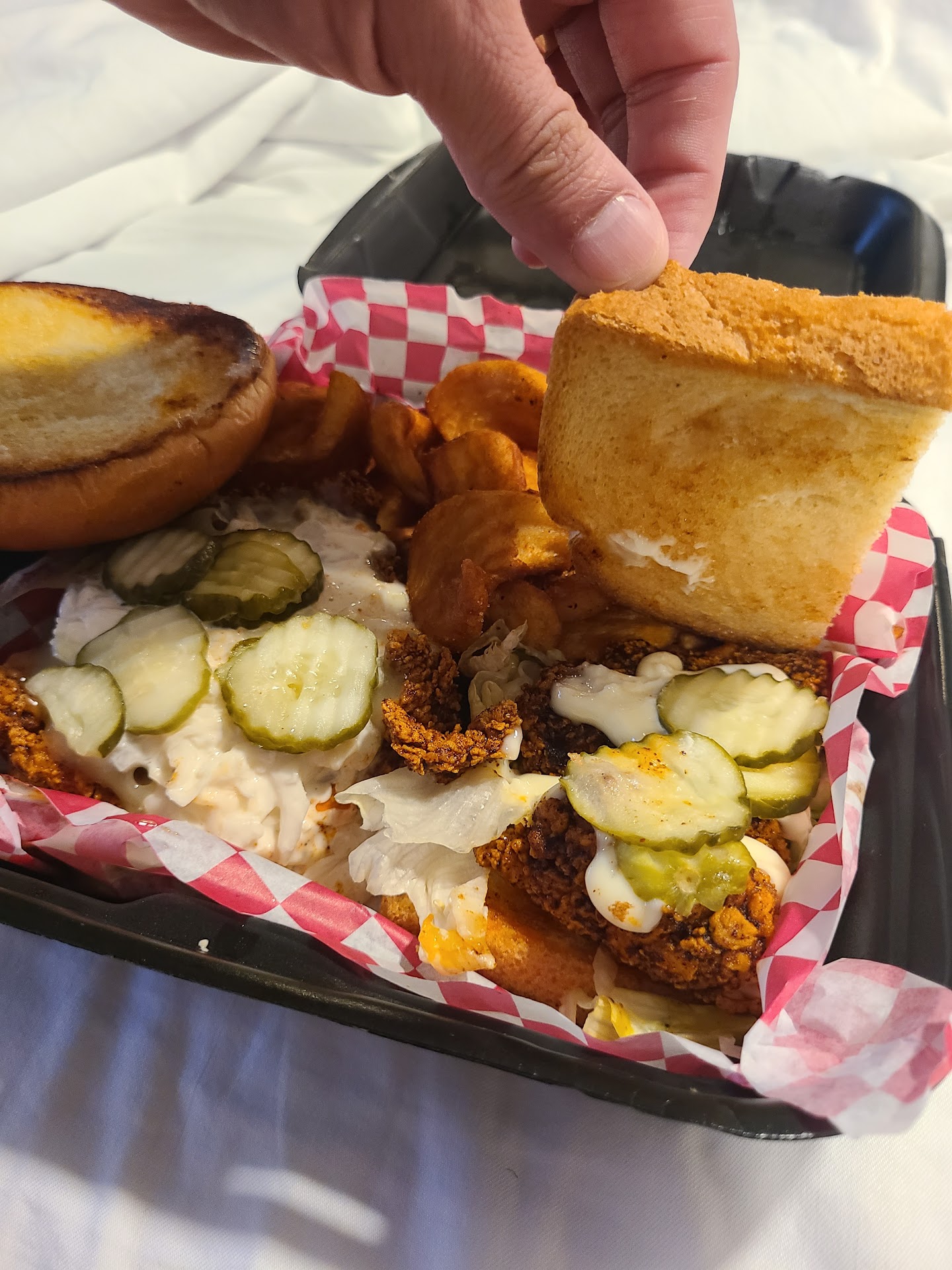 Ā Ā Ā Read moreFood portions are excellent. Chicken was juicy and I really liked the sidewinder fries. Slightly disappointing that the sandwiches we ordered had maybe a tablespoon of coleslaw on them. And if there was any spicy mayo at all, it was not enough to notice or taste. I like the idea of a virtual kitchen, however, anyone who is familiar with fried foods knows that they don't hold up (or stay crispy) for long, especially when transported in a container to eat 10-15 minutes later. If you did want to truly showcase this style of food in the best way, a sit-down restaurant would be the way to go. Or possibly even a spot at the state fair, or a food truck. Just food...