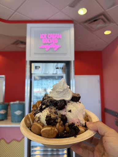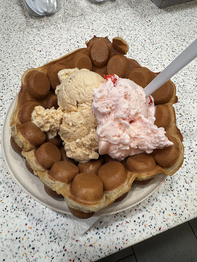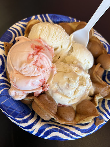 We had seven in our group, adults and kiddos - and all enjoyed the homemade ice cream (strawberry, bubble gum, cotton candy, salted caramel, birthday cake - of course, a ton of toppings - we had sour gummy worms & regular gummy worms) as well as the FRESH, made to order bubble bowl we decided was a mix between a churro, donut and pancake. It was something we had never seen or tasted before - and we want more The chocolate/sprinkle dipped, waffle cone was also a hit! There are also milkshakes! We enjoyed a peanut butter milkshake, highly recommend.