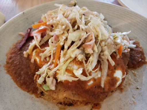 Their new location is a portion of Pretzel Bell which seems to have recently been renovated, and when we arrived there were several open tables, but we were instead taken inside the other portion of the restaurant which was just Pretzel Bell. We didn't get the Avalon menu, but were told the Pretzel Bell menu was the same - fair enough. I ordered the French Toast and a side of sausage and my wife ordered the Potato Tacos. I got the sausage because when I asked if the bacon was chewy or crispy the server didn't know - just that it was cooked "good". The tacos were really nice and had a great slaw & sauce with it. The french toast however, was very dry on the inside and didn't seem to have been soaked in anything (especially not the custard that the menu claimed). Really nice flavor still with some pretty good eggs and ~a tablespoon of berries.