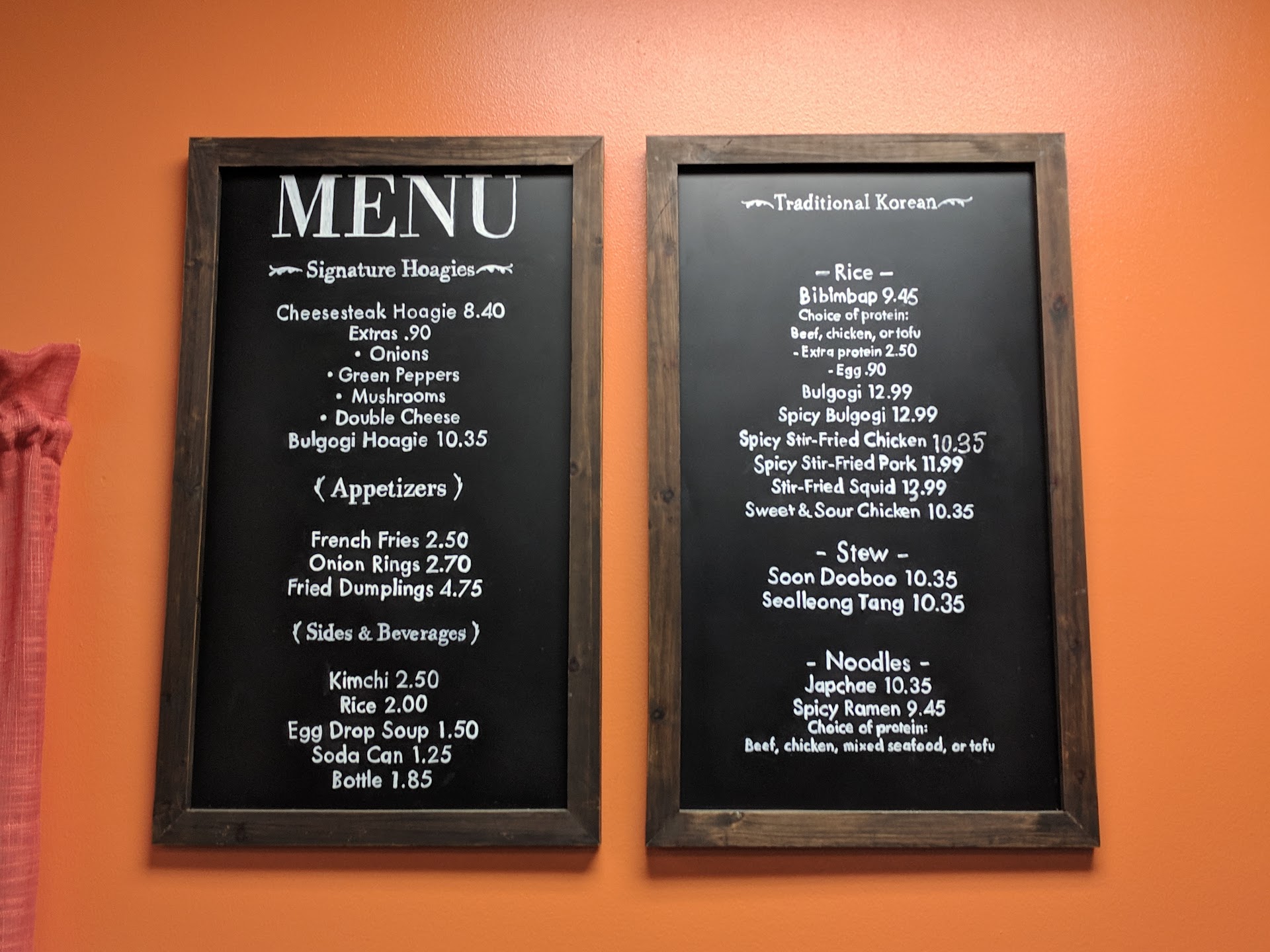 I have toured Korea and know how Korean food should taste. I also know how Korean people should act. Not only is the Korean food soggy and lazily prepared, the wife is extremely rude. I asked for my meal to be made extra spicy. She said, literally, no. I would have hung up if I hadn't been on deadline. (Apparently, the place makes its hoagies extra spicy via quicky cooked jalapenos, which works better than one would think.) She may have grunted at me when I arrived and definitely grunted at me when I politely said goodbye.